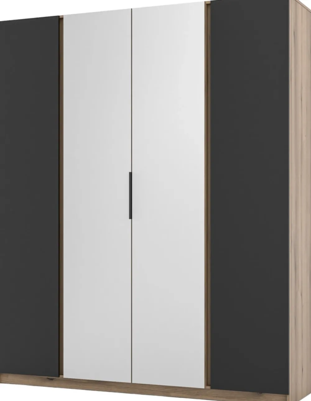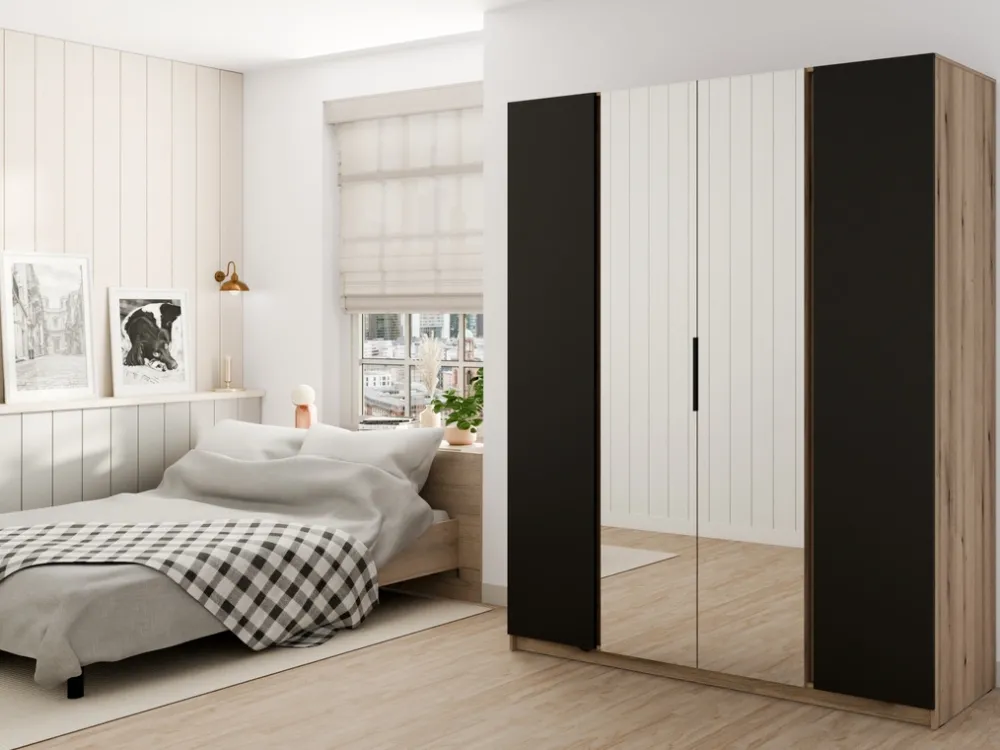 Czarne, aluminiowe uchwyty dodają szafie nowoczesnego charakteru, a jednocześnie są niezwykle praktyczne. Każdy detal naszej szafy został zaprojektowany z myślą o estetyce i wygodzie użytkowania.
