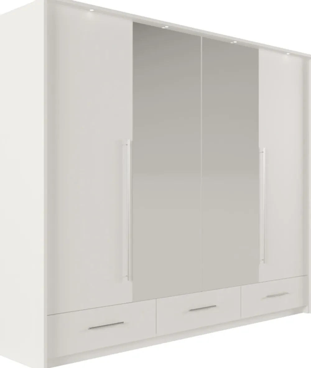 Szafa o szerokości 255 cm to połączenie stylu, funkcjonalności i przestronności. Dzięki nowoczesnym rozwiązaniom, takim jak lustra, harmonijkowy system otwierania i przemyślany układ wnętrza, szafa spełni oczekiwania nawet najbardziej wymagających użytkowników.