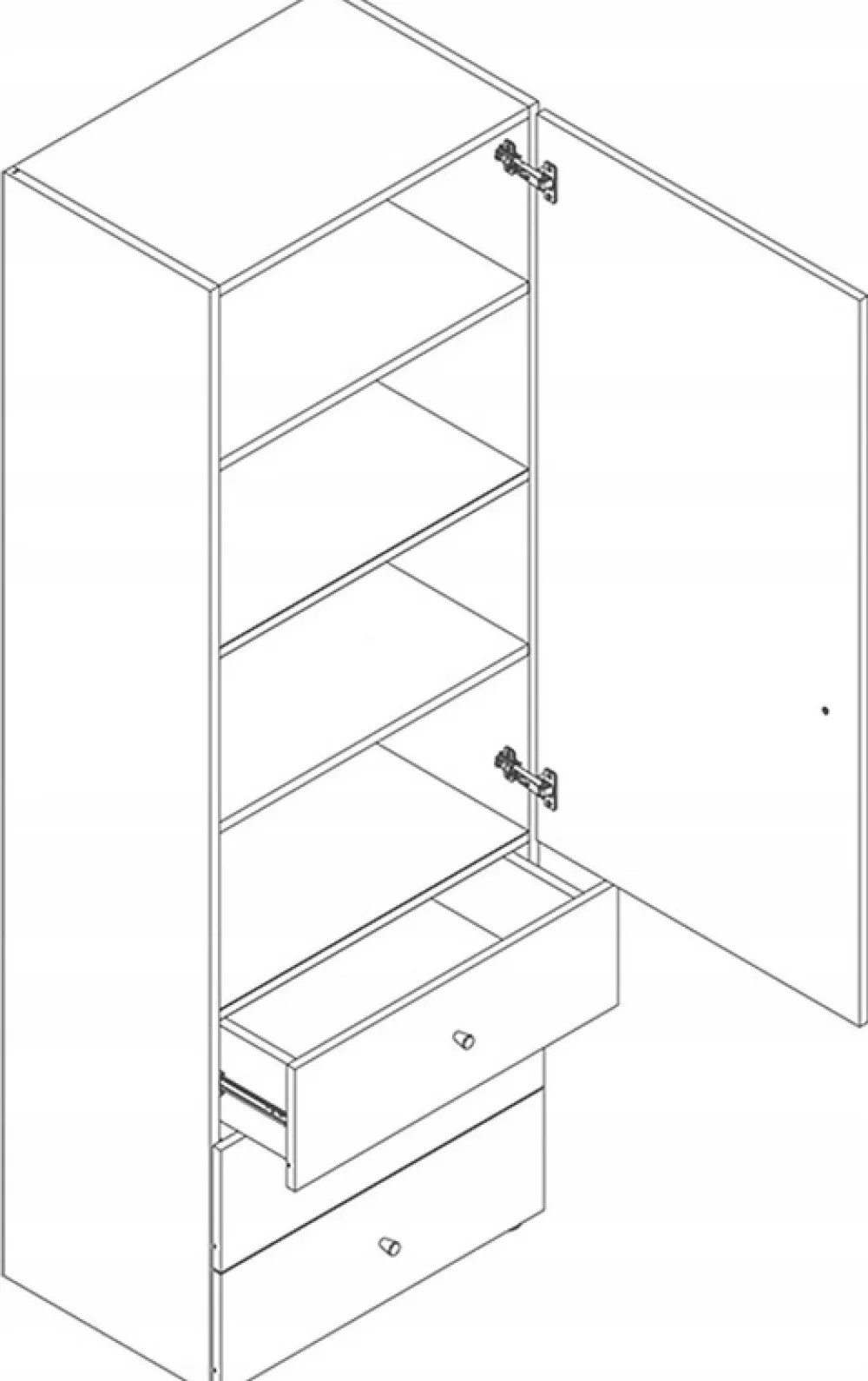 - Szafa młodzieżowa YOKO posiada 60 cm szerokości, które obejmują cztery półki na ubrania oraz trzy pojemne szuflady osadzone na prowadnicach kulkowych u dołu. Szafa wykonana z płyty laminowanej 16 mm, obrzeża wykończono okleiną PCV.