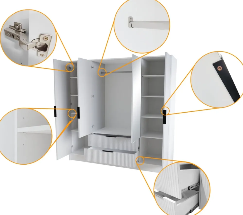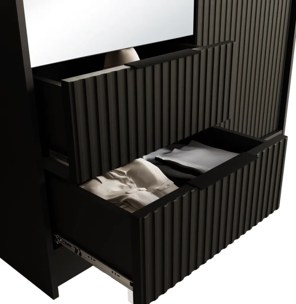 ✅ Dwie pojemne szuflady u dołu – dodatkowa przestrzeń na bieliznę i drobne akcesoria.