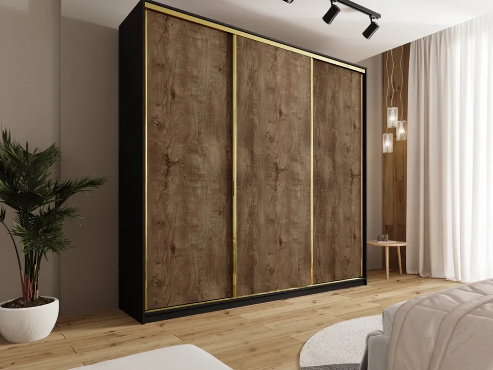 Szafa przesuwna 250×235 cm ze złotym wykończeniem – maksymalna pojemność i elegancja