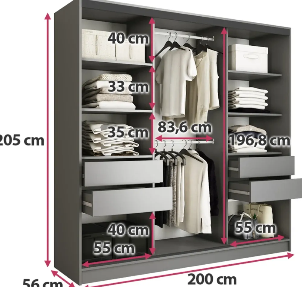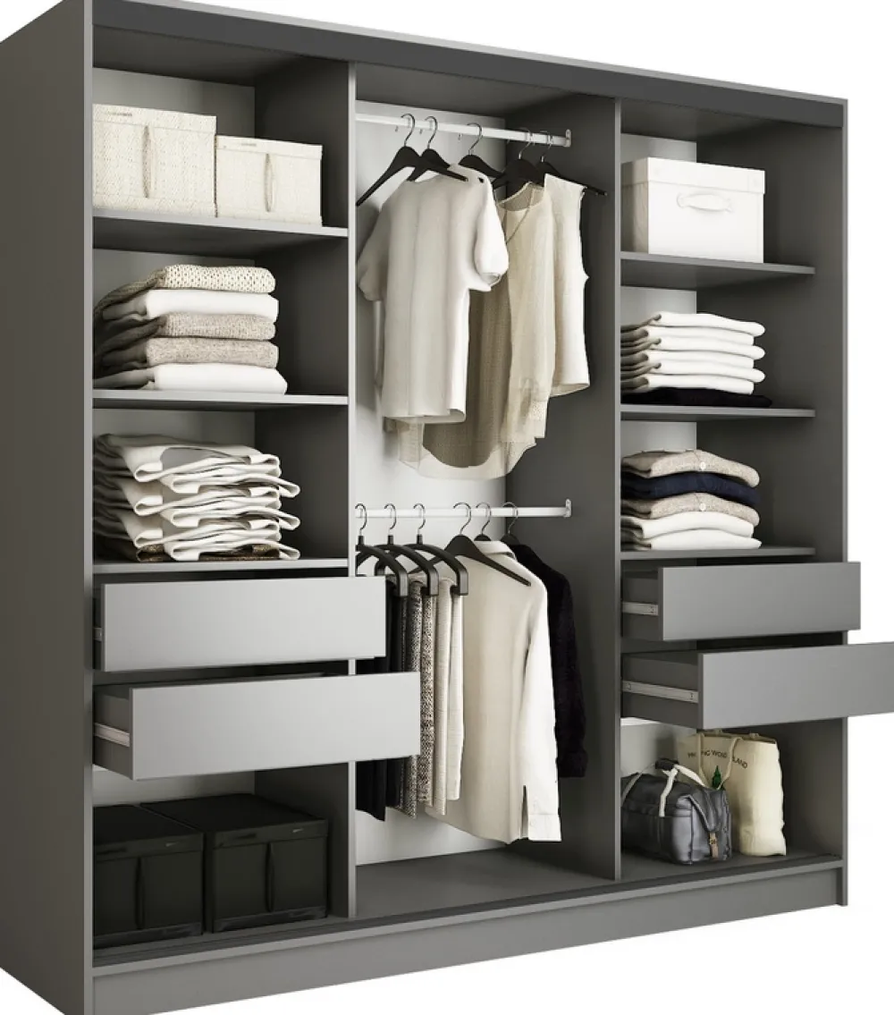 Nasza szafa przesuwna z lustrem to nie tylko mebel, ale i prawdziwa ozdoba Twojego wnętrza. Dzięki niej każdy dzień zaczynasz z uśmiechem, mając wszystko w zasięgu ręki. Wybierz jakość, wybierz funkcjonalność, wybierz nowoczesny design.