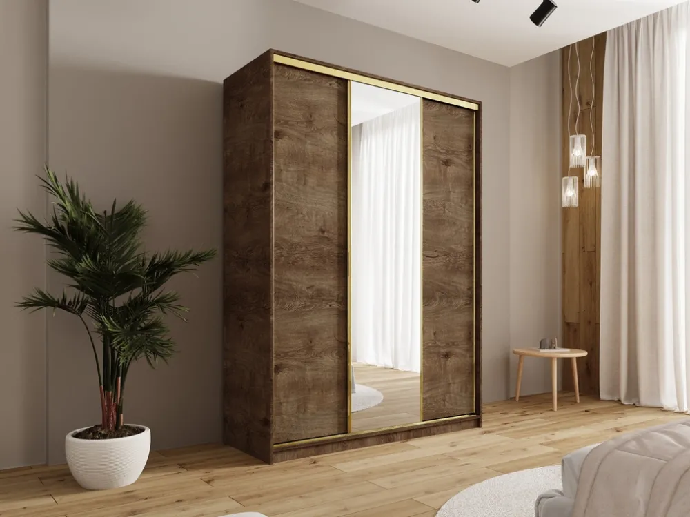 Szafa przesuwna z lustrem 150 cm – elegancja i funkcjonalność w złotym wydaniu