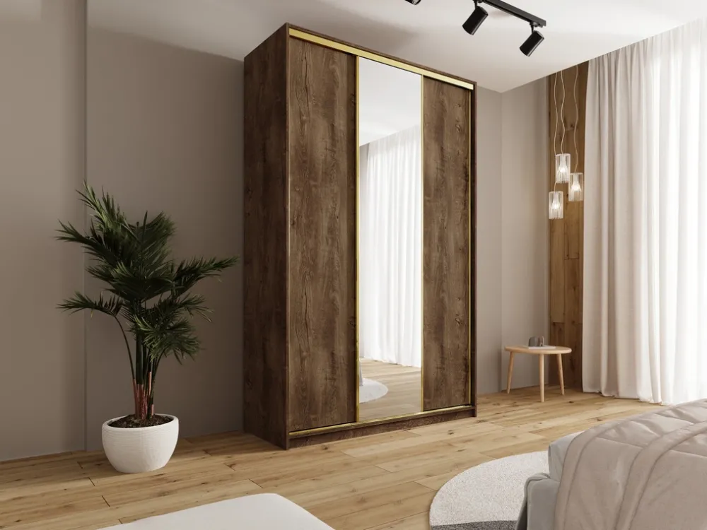 Szafa przesuwna 150×235 cm ze złotym wykończeniem – maksymalna pojemność i elegancja