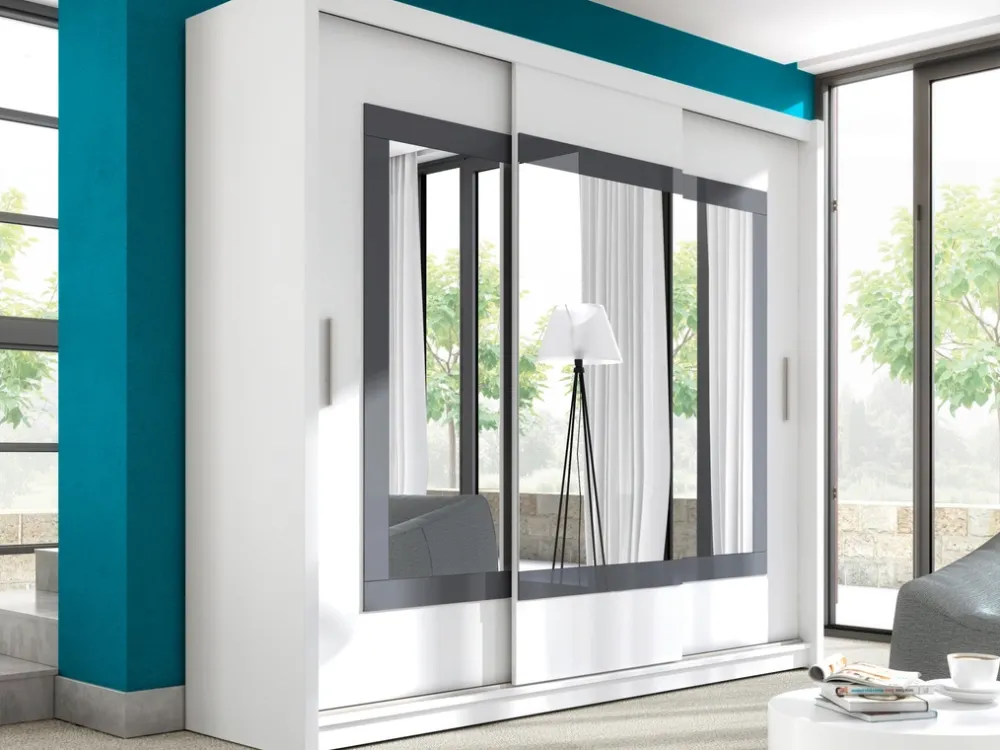 Szafa przesuwna o szerokości 250 cm PROTON to idealne rozwiązanie dla osób, które poszukują zarówno przestronności, jak i nowoczesnego designu. Dzięki trzem przesuwanym drzwiom szafa nie tylko zapewnia wygodny dostęp do swojej zawartości, ale także oszczędza miejsce, co czyni ją idealnym wyborem nawet do mniejszych pomieszczeń.