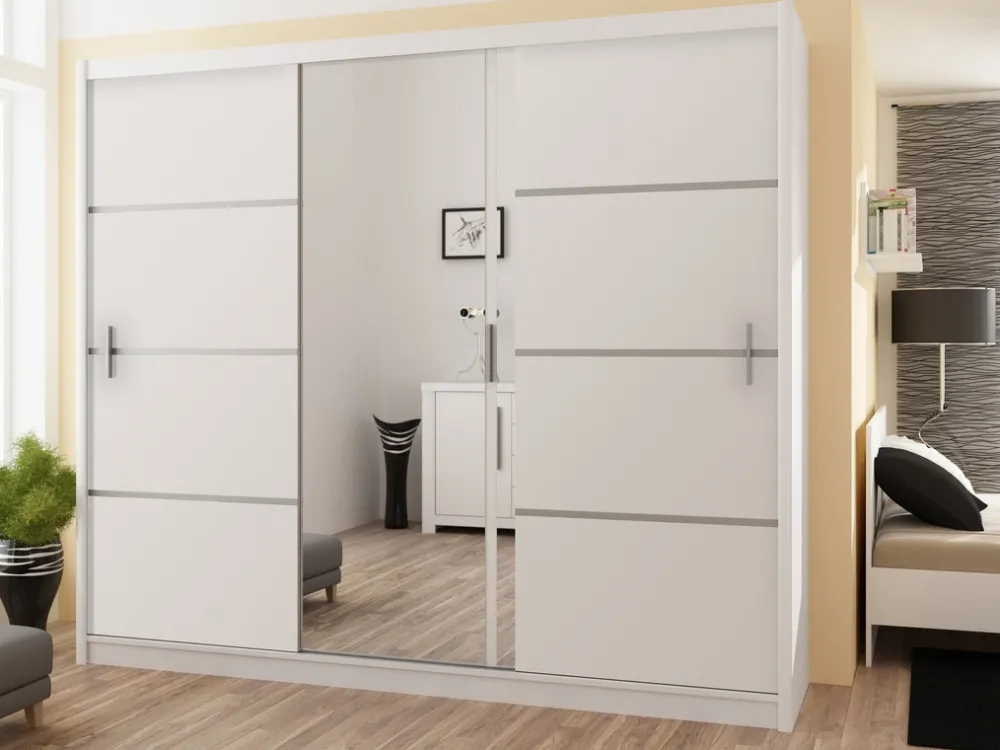 Szafa przesuwna o szerokości 250 cm VOTIS to eleganckie i funkcjonalne rozwiązanie, które zapewnia przestronne miejsce do przechowywania i wprowadza do wnętrza nowoczesny styl. Jej imponująca wielkość i przemyślany układ wnętrza czynią ją idealnym wyborem zarówno do sypialni, jak i garderoby, zapewniając jednocześnie wygodę i estetyczny wygląd.