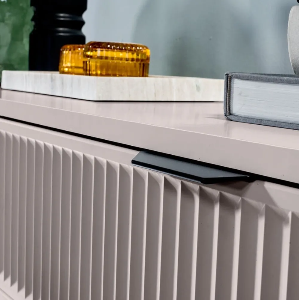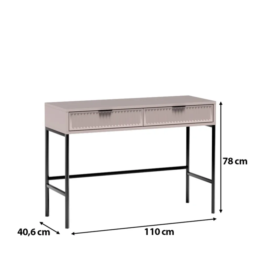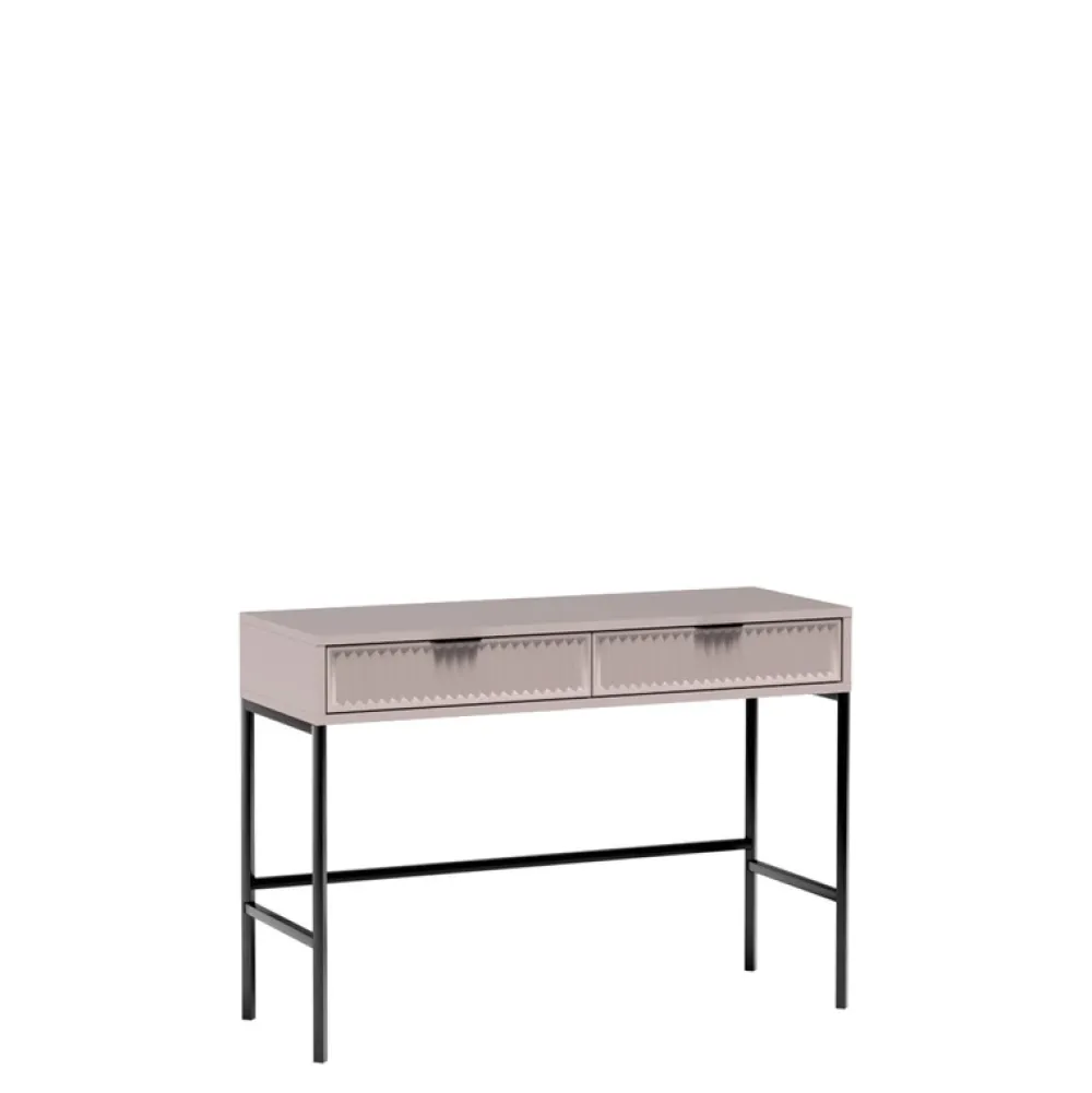 - Nasza toaletka LATINA w odcieniu kaszmiru to kwintesencja elegancji i funkcjonalności. Jej ryflowane fronty szuflad i czarne metalowe nóżki tworzą wyjątkowy design, który doda szyku każdemu wnętrzu. Przy tym meblu każda chwila stanie się wyjątkowa.
