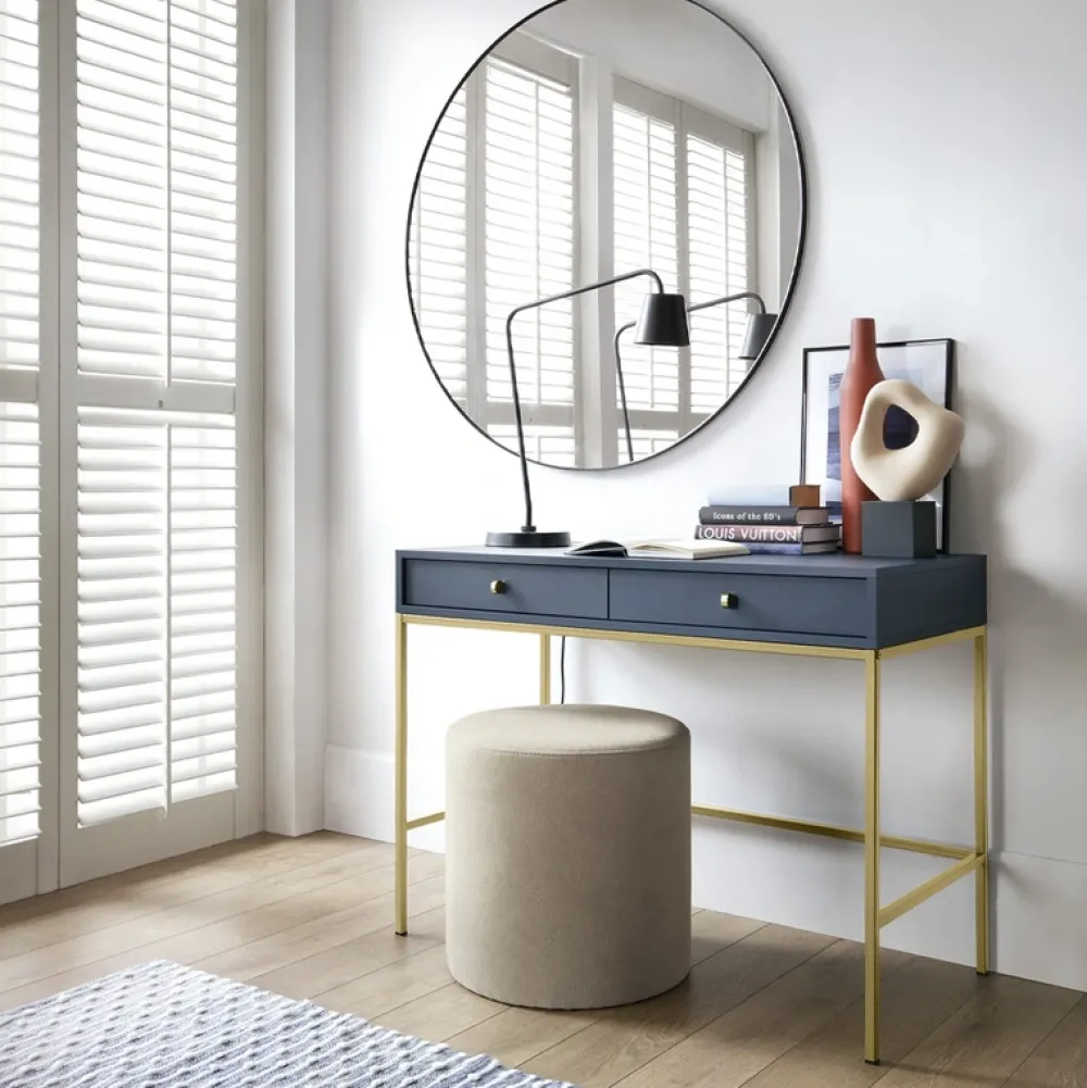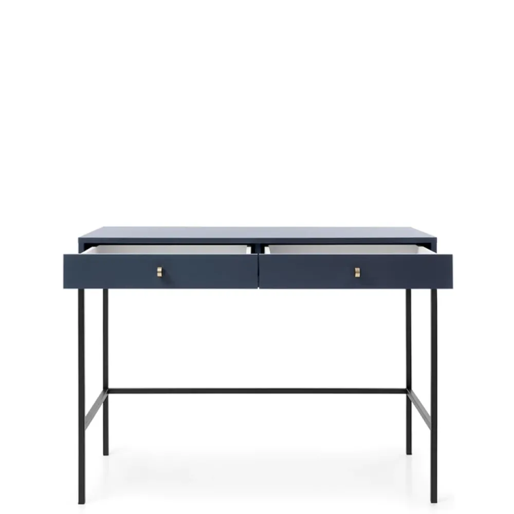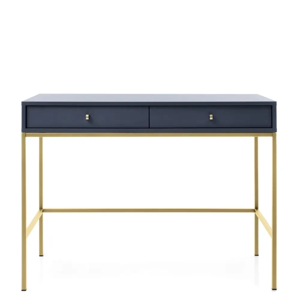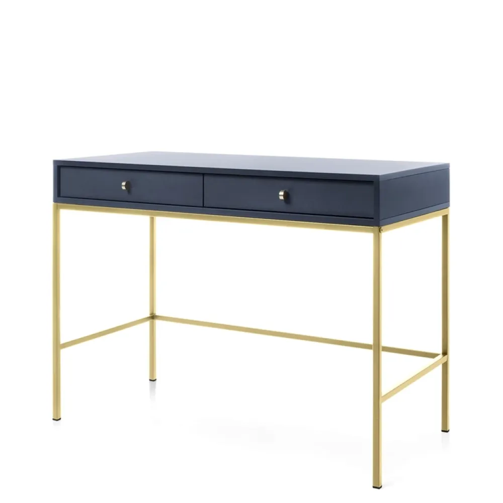 - Toaletka MONTI w tonacji granatowej to kwintesencja nowoczesnego stylu. Dwie szuflady na drobiazgi, złote metalowe nogi dla szczypty luksusu. Wszystko, czego potrzebujesz, by poczuć się wyjątkowo.