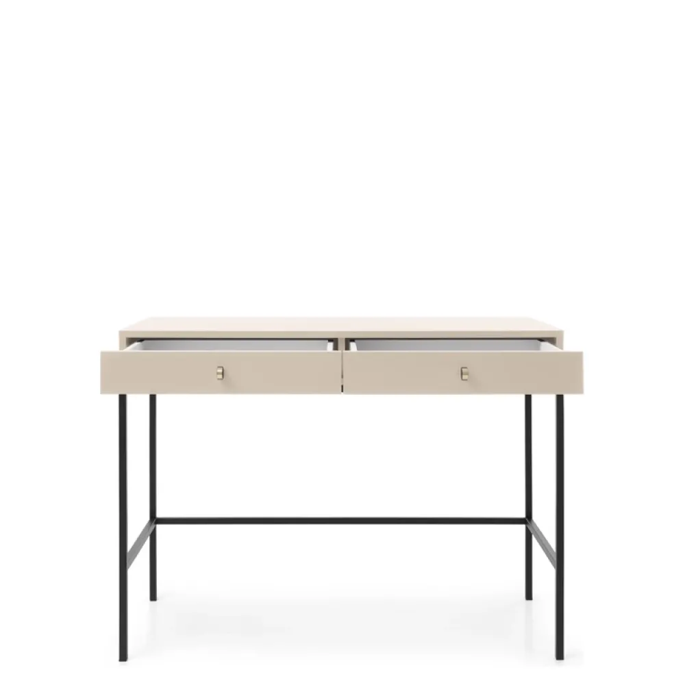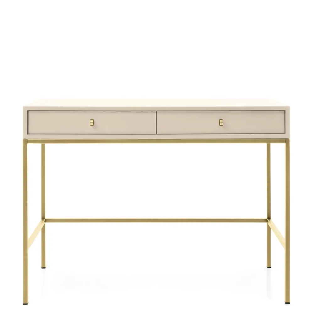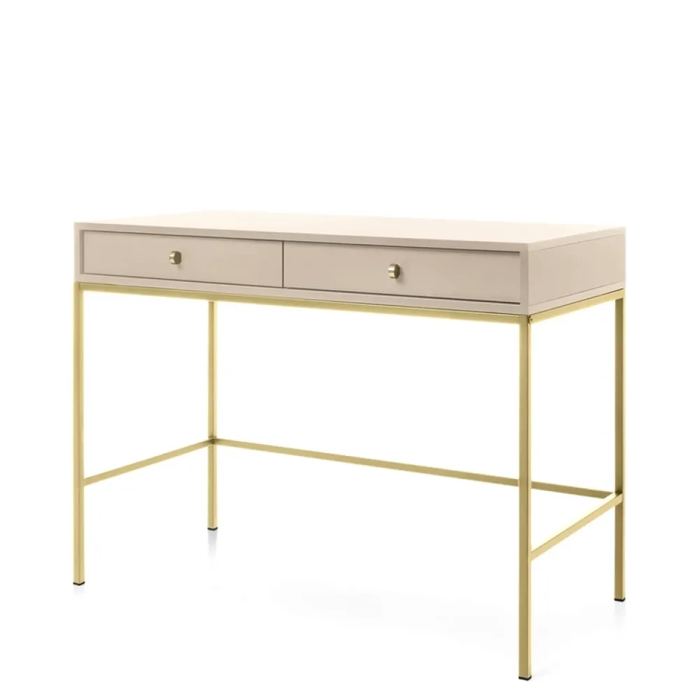 - Toaletka MONTI w tonacji beżowej to kwintesencja nowoczesnego stylu. Dwie szuflady na drobiazgi, złote metalowe nogi dla szczypty luksusu. Wszystko, czego potrzebujesz, by poczuć się wyjątkowo.