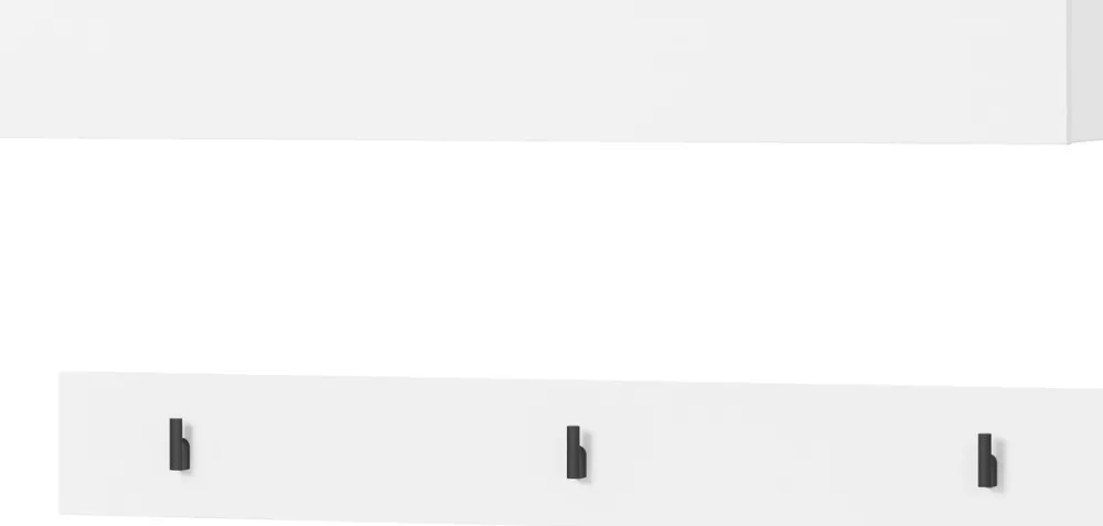 - Nowoczesny wieszak ścienny SIMPLY poziomy. Wieszak w kolorze białym. Pięć haczyków umożliwia wygodne przechowywanie kurtek i toreb, a smukła forma i biały kolor doskonale dopełniają nowoczesne wnętrza. Wykonany z płyty laminowanej 16mm.
