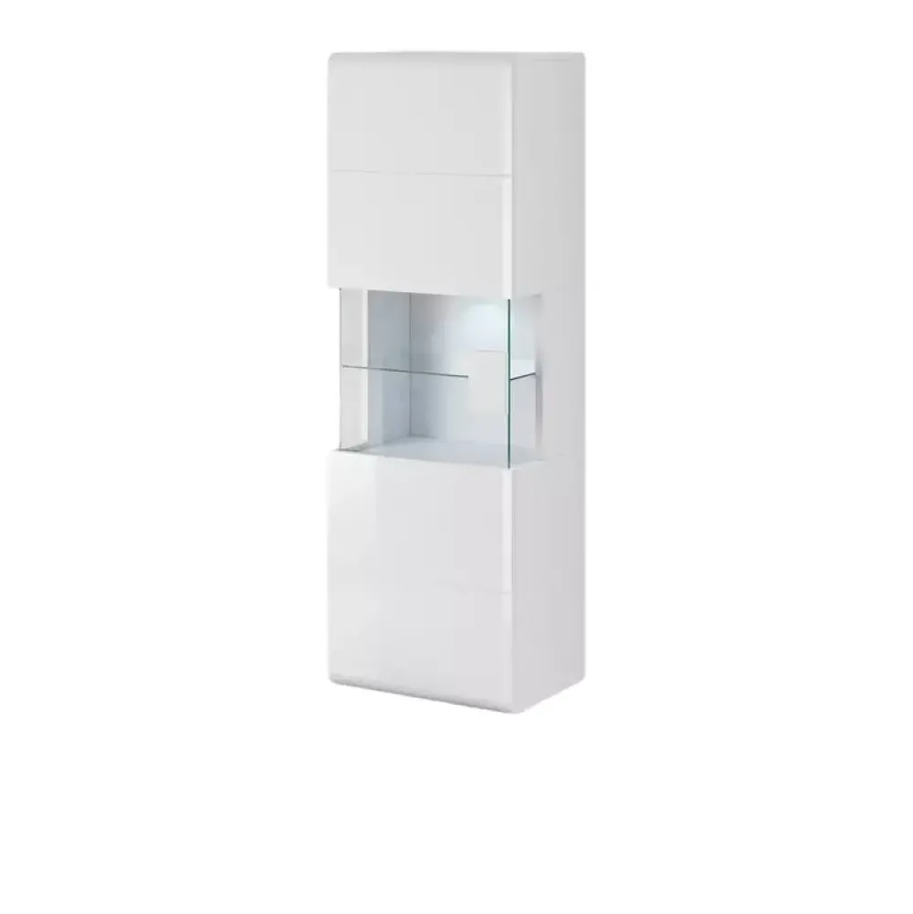 Elegancka witryna wisząca o szerokości 53 cm wyposażona w drzwiczki uchylne, za którymi znajdują się półki.