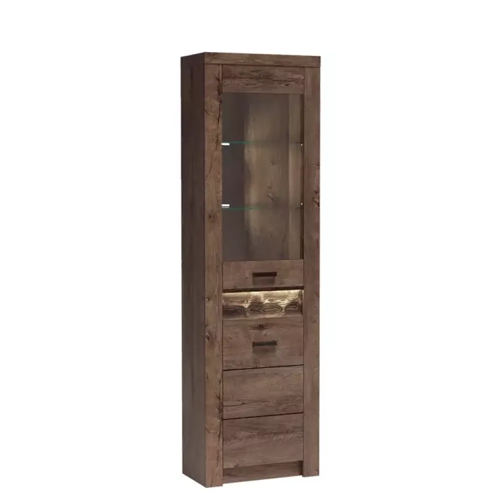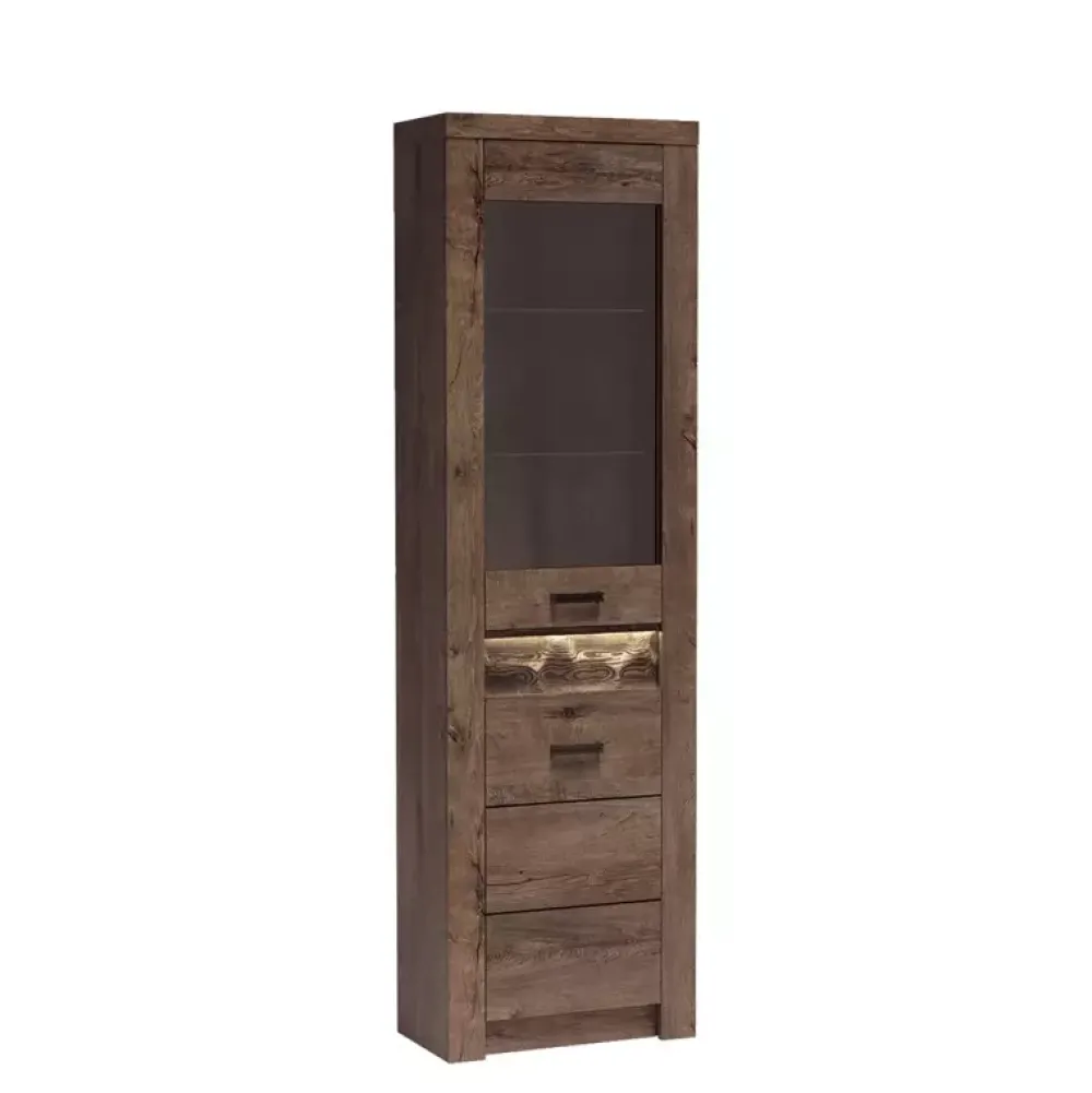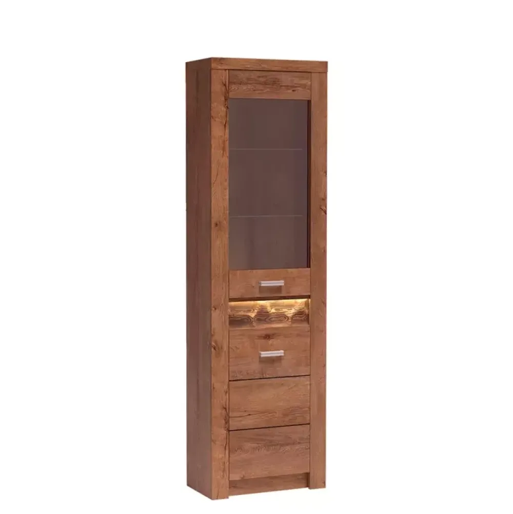 Witryna INELI jest nowocześnie zaprojektowaną propozycją, która dzięki swojej niebanalnej stylistyce znajduje uznanie we współczesnych aranżacjach salonów. Witryna została wyposażona w szafkę u dołu, w której znajduje się półka. Natomiast u góry swoje miejsce znalazły przeszklone drzwi, za którymi są dwie półki na których możesz umieścić swoje dekory oraz akcesoria.