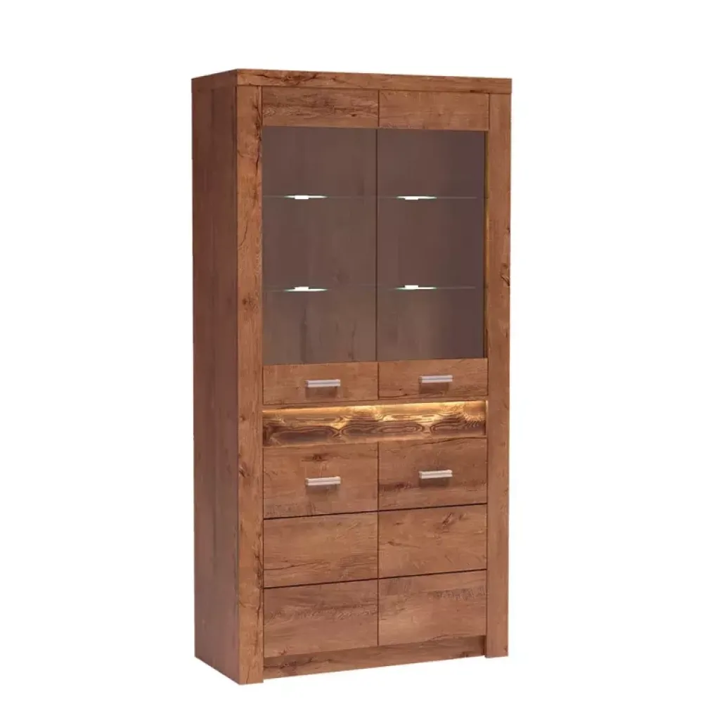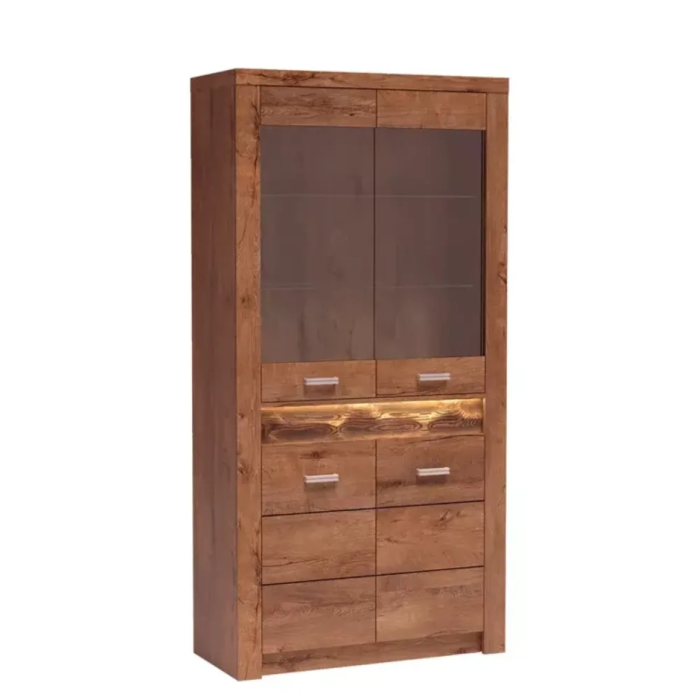 - Korpus oraz front witryny wykonano z solidnej płyty laminowanej.