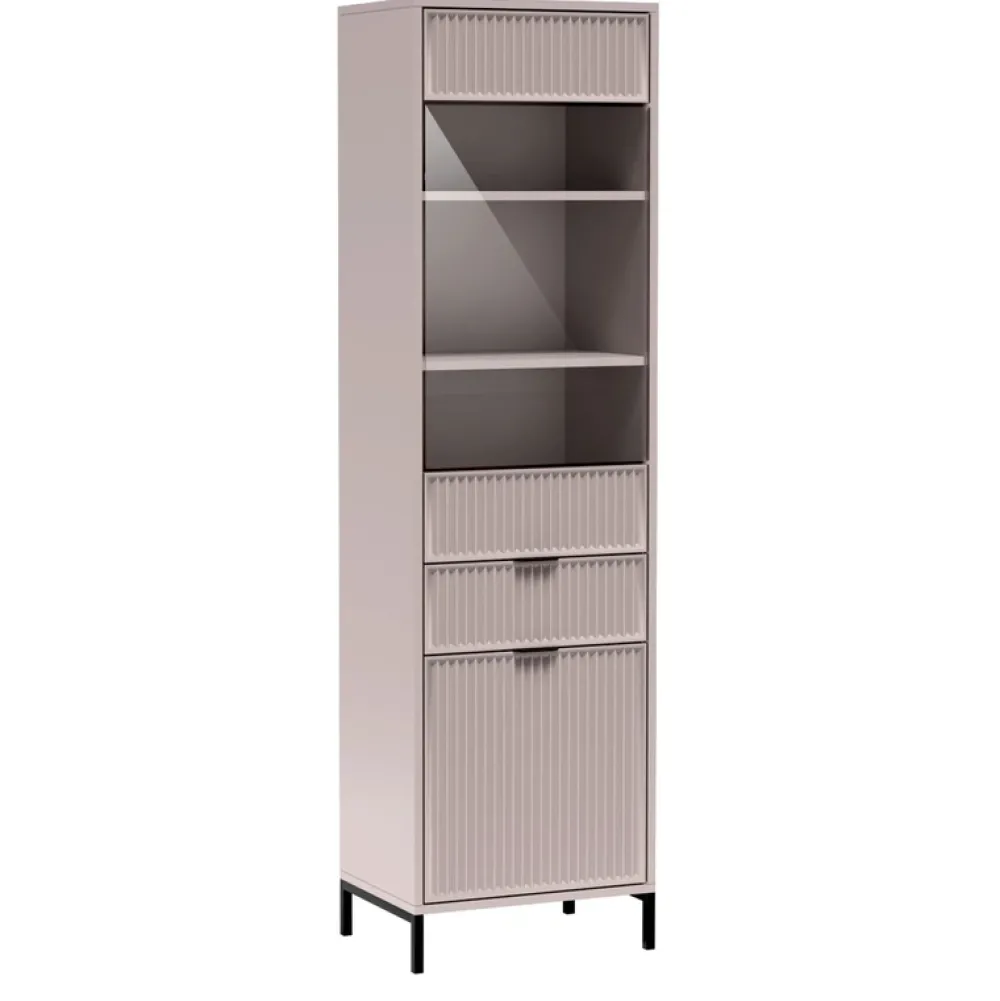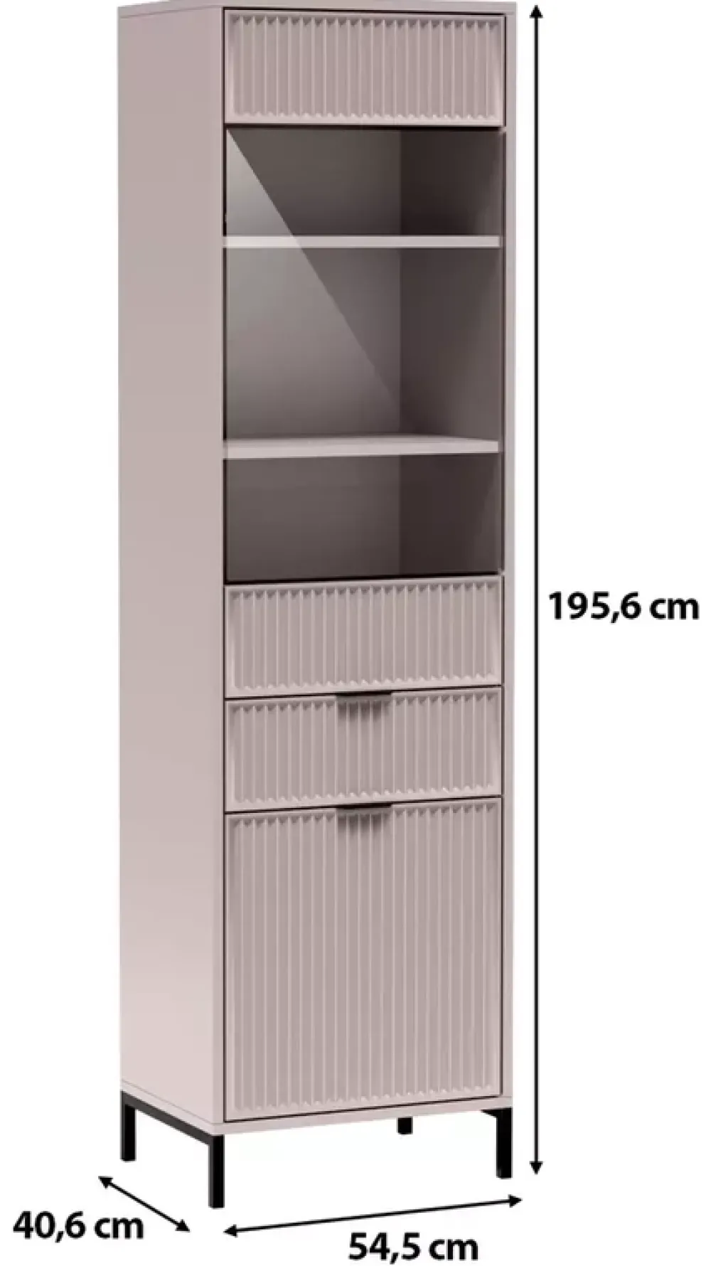 - Zadbaj o elegancję swojego salonu z naszą kaszmirową witryną LATINA. Jej ryflowane fronty drzwi i szuflad dodają subtelnej elegancji, podczas gdy praktyczne rozwiązania oferują idealne miejsce dla Twoich skarbów.
