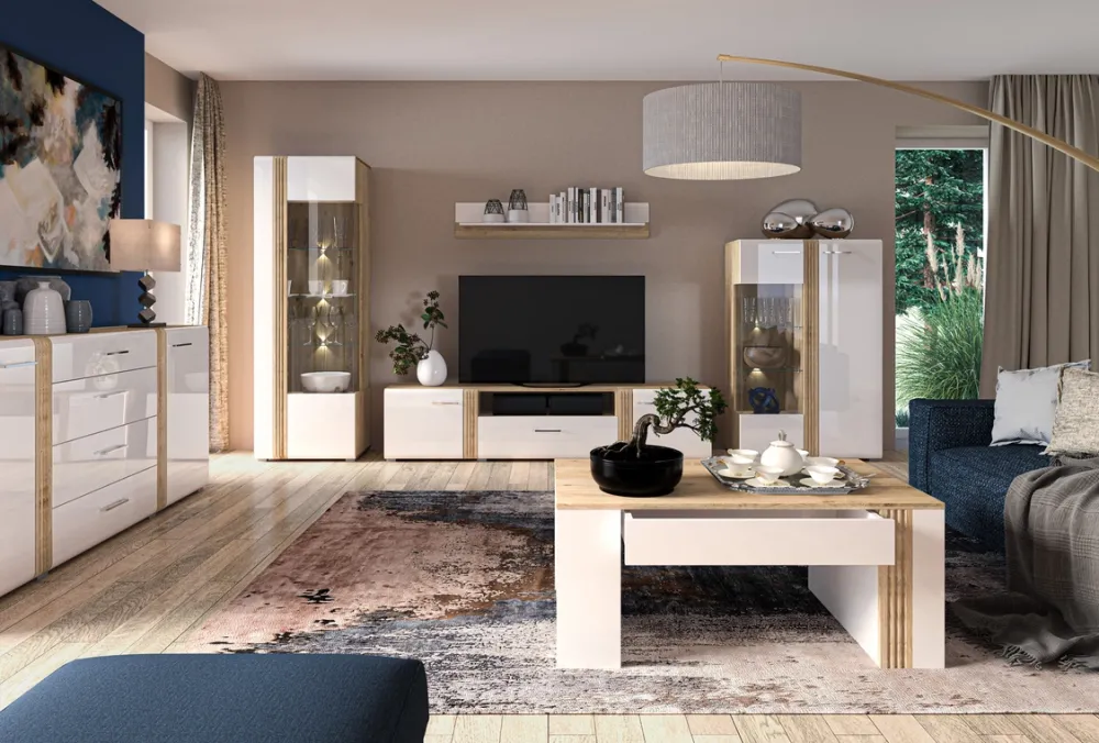 Nasza witryna to doskonałe połączenie nowoczesnego designu i praktycznych rozwiązań. Dzięki przemyślanej konstrukcji i wysokiej jakości materiałom witryna ta stanie się niezastąpionym elementem Twojego salonu. Odkryj piękno i komfort naszych mebli i stwórz wnętrze swoich marzeń!