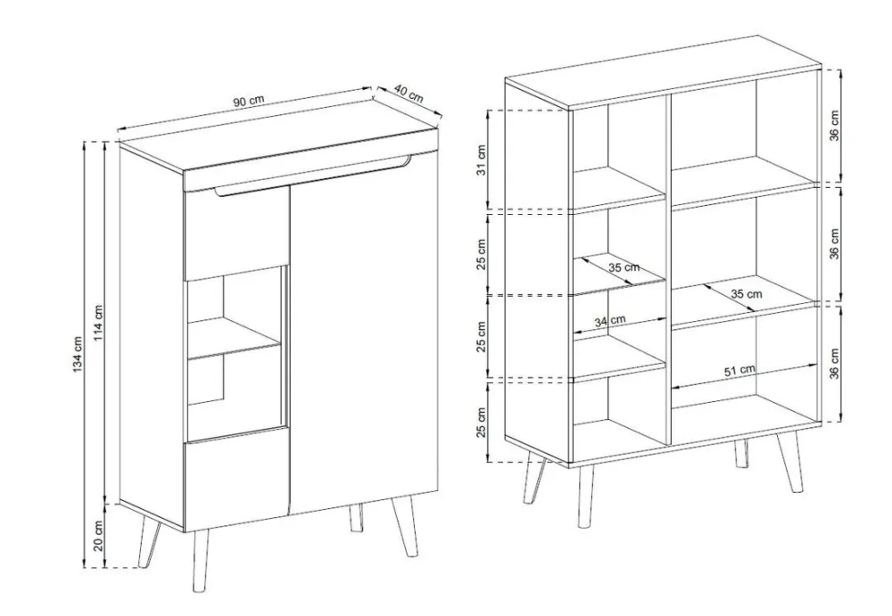 - Witryna o szerokości 90 cm zapewni Ci dużo miejsca na przechowywanie i ekspozycję.