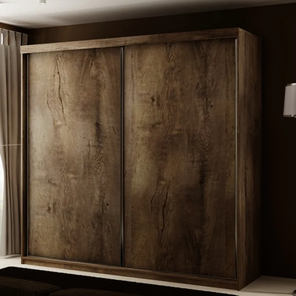 - Szafa dwudrzwiowa TARO 200 cm w kolorze jesion ciemny łączy elegancję i funkcjonalność. Posiada lustra powiększające optycznie przestrzeń, półki, drążek i przesuwne drzwi oszczędzające miejsce. Solidna konstrukcja zapewnia trwałość na lata.