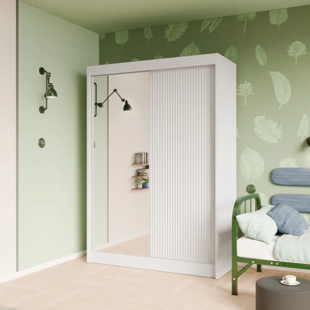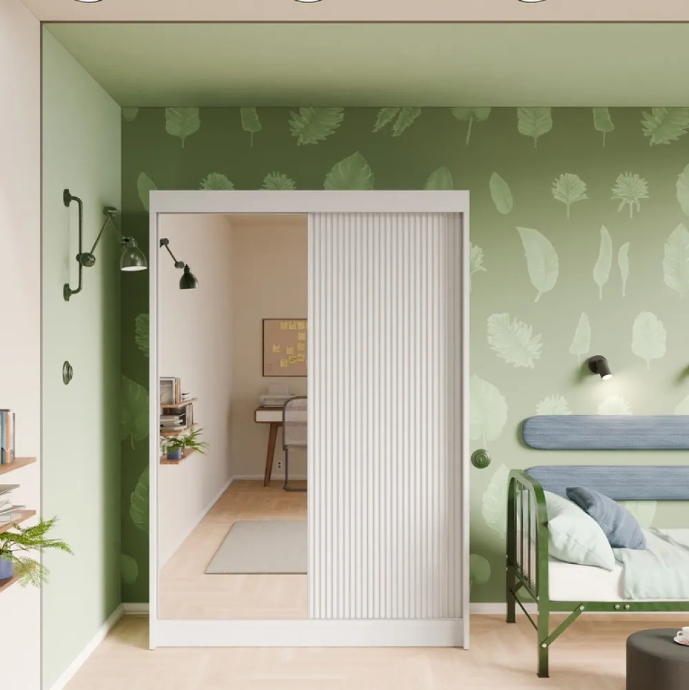 Szafa przesuwna 150 cm z lustrem i frezowanym frontem – elegancja i funkcjonalność w jednym