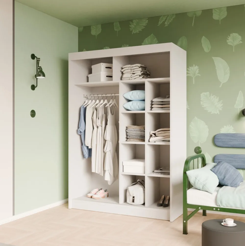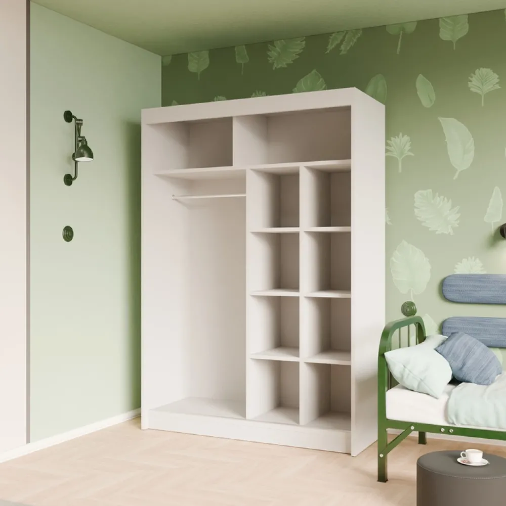 ✅ Liczne półki po prawej stronie – idealne do przechowywania ubrań, pościeli i akcesoriów.