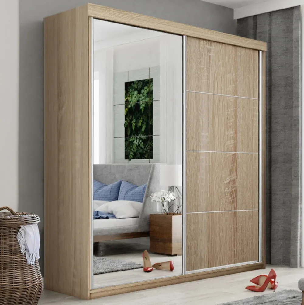 Szafa przesuwna z lustrem TARO – ciepło i styl w odcieniu dąb sonoma