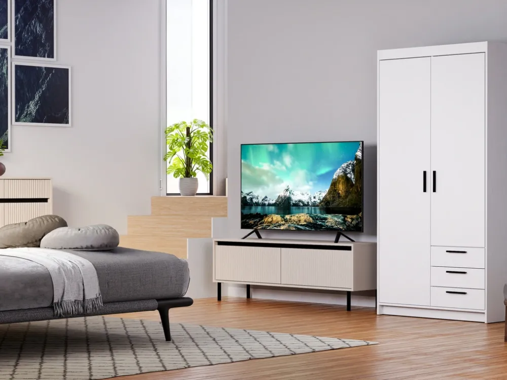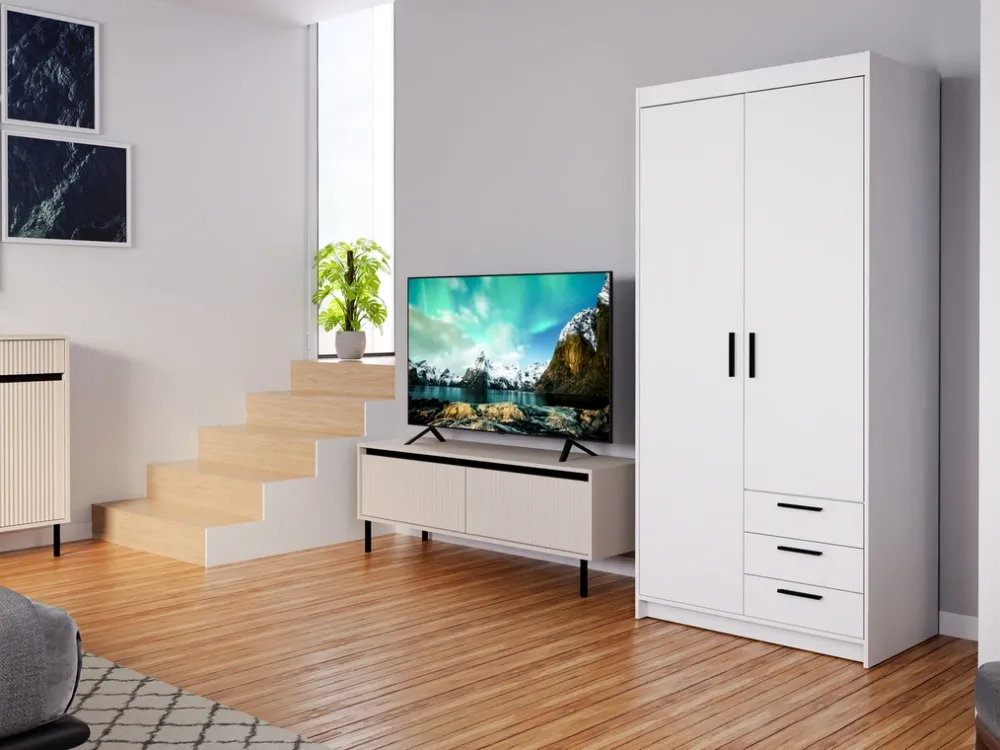 Nowoczesna i kompaktowa szafa KUBA 90 cm w kolorze biały mat to propozycja dla tych, którzy szukają eleganckiego mebla, który nie przytłoczy wnętrza. Jasna kolorystyka optycznie powiększa przestrzeń i świetnie odnajduje się w aranżacjach skandynawskich, minimalistycznych i klasycznych. Idealna do sypialni, garderoby czy przedpokoju.