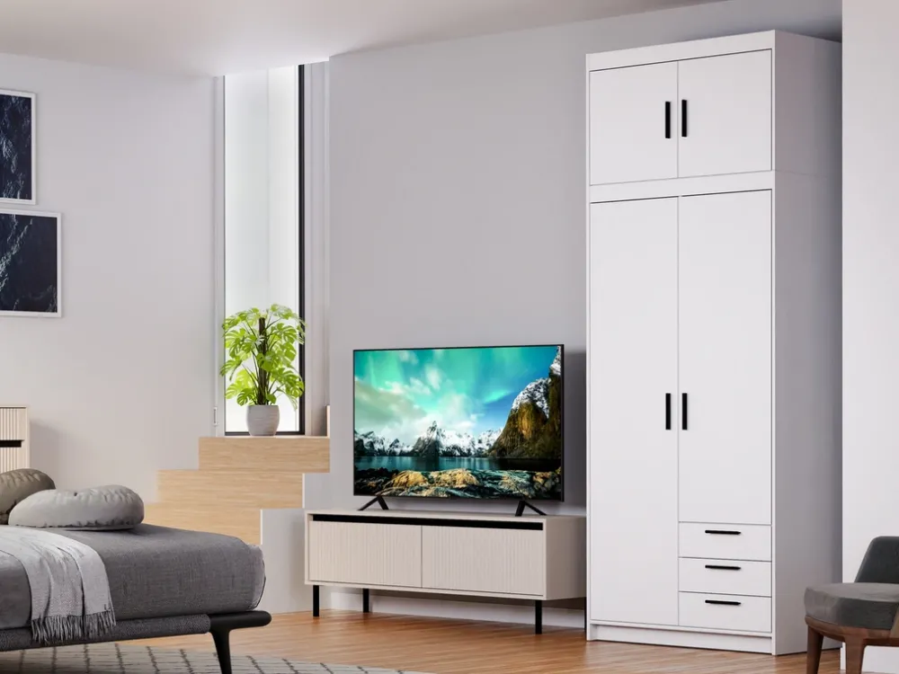 Dzięki swojej uniwersalności i jasnej barwie, szafa w białym macie doskonale wpasuje się w każdą aranżację. Możliwość doposażenia w dedykowaną nadstawkę sprawia, że zyskasz jeszcze więcej przestrzeni do przechowywania – bez zajmowania dodatkowego miejsca na podłodze.