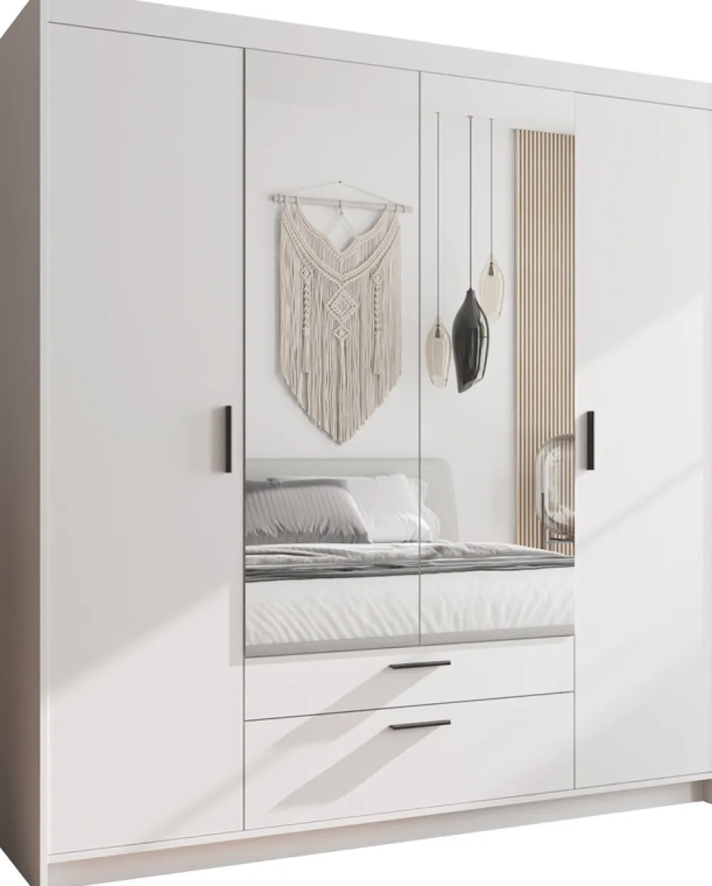 Zestawy Mebli Do Przedpokoju|Szafy Modułowe>Lempert Czterodrzwiowa biała szafa modułowa 176 cm z lustrem i szufladami KUBA biały