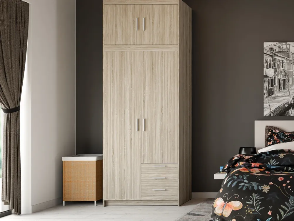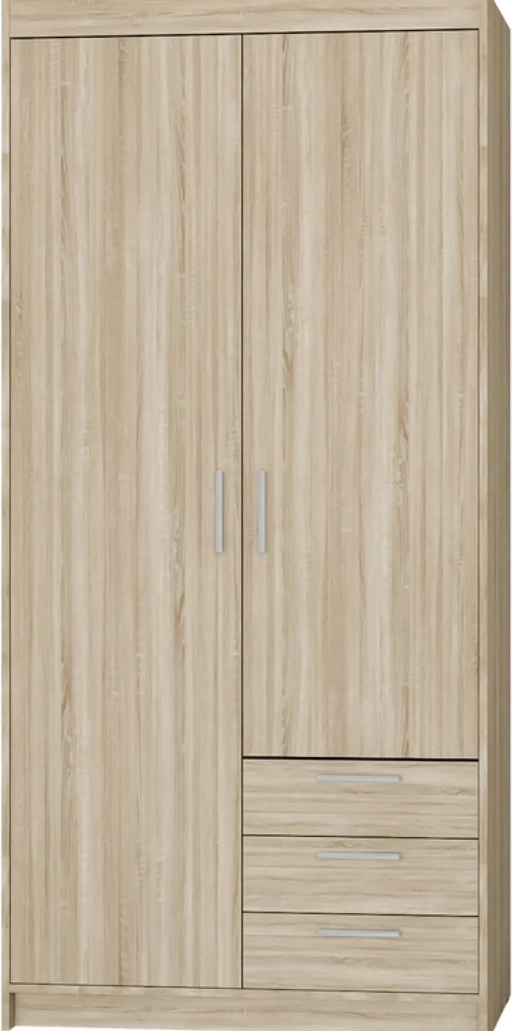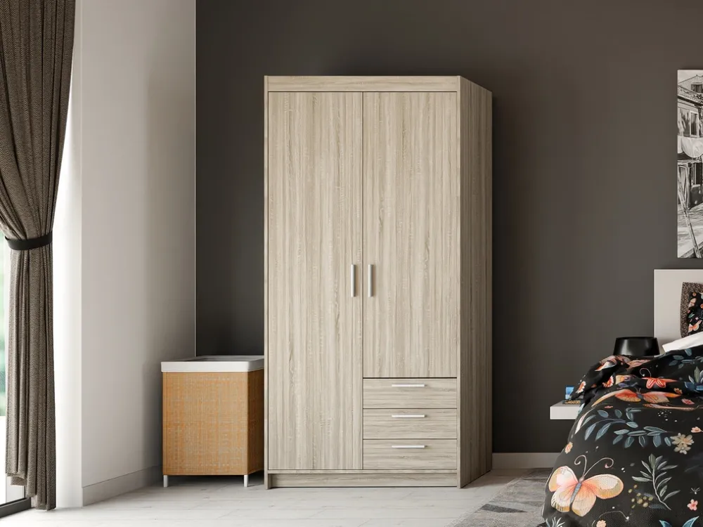 Stylowa i praktyczna szafa KUBA o szerokości 90 cm to idealna propozycja do każdego nowoczesnego wnętrza. W wersji dąb sonoma wnosi do pomieszczenia naturalność, ciepło i klasyczny urok. Dzięki kompaktowej formie świetnie sprawdzi się w sypialni, przedpokoju czy pokoju młodzieżowym, oferując jednocześnie wyjątkową pojemność i wygodę użytkowania.