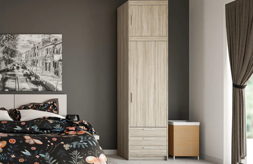 Szafa z nadstawką KUBA dąb sonoma – jasny styl i praktyczne rozwiązania