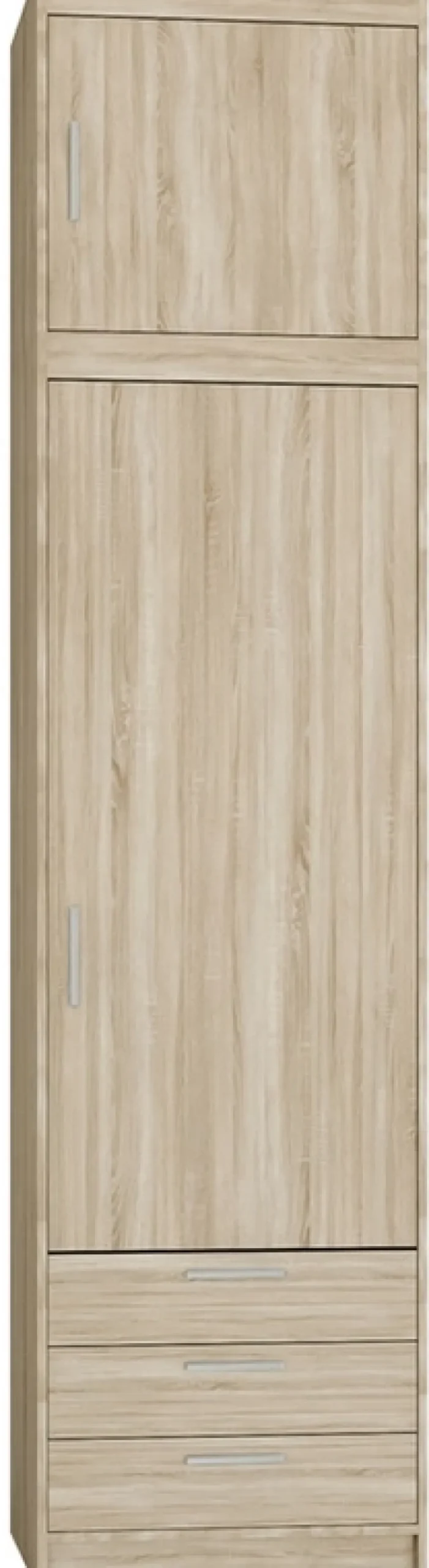 Szafa z nadstawką KUBA w wybarwieniu dąb sonoma to nowoczesna propozycja dla miłośników jasnych, naturalnych wnętrz. Kompaktowy wymiar 60 cm to gwarancja wygodnego dopasowania do każdej przestrzeni, nawet tej najmniejszej. Jasny dekor dodaje lekkości aranżacjom i optycznie powiększa pomieszczenie.