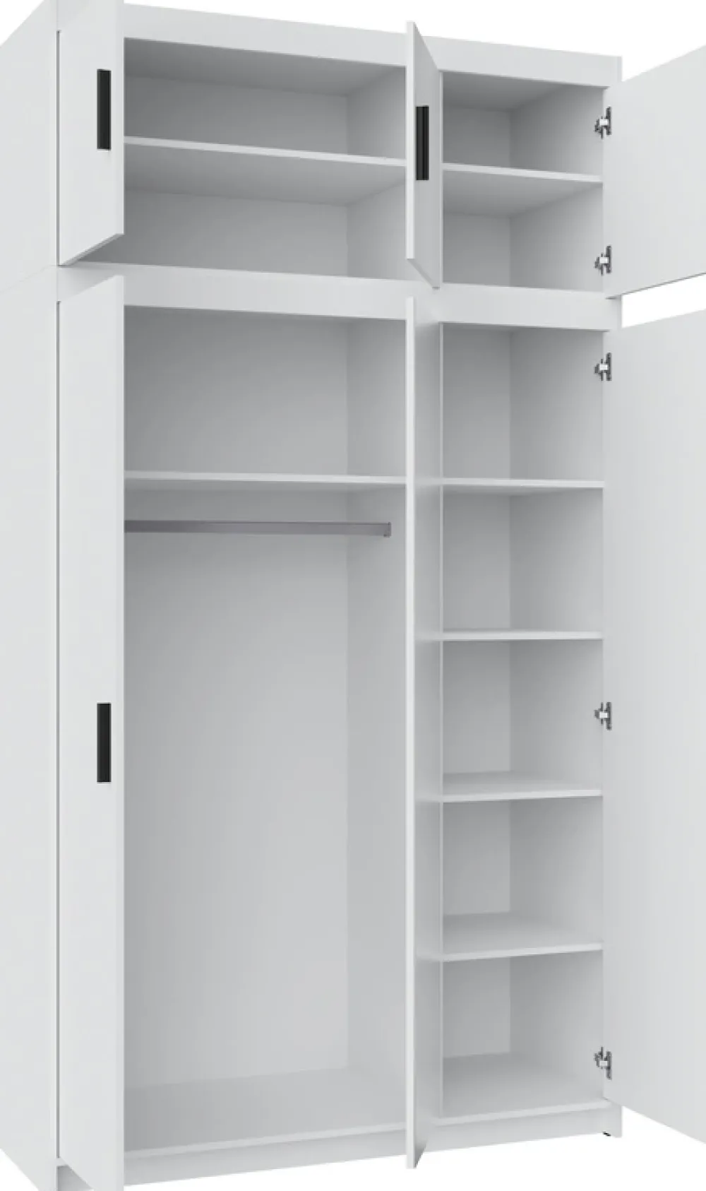 - Nadstawka z 3 drzwiami i 2 półkami – dodatkowa przestrzeń bez zajmowania podłogi