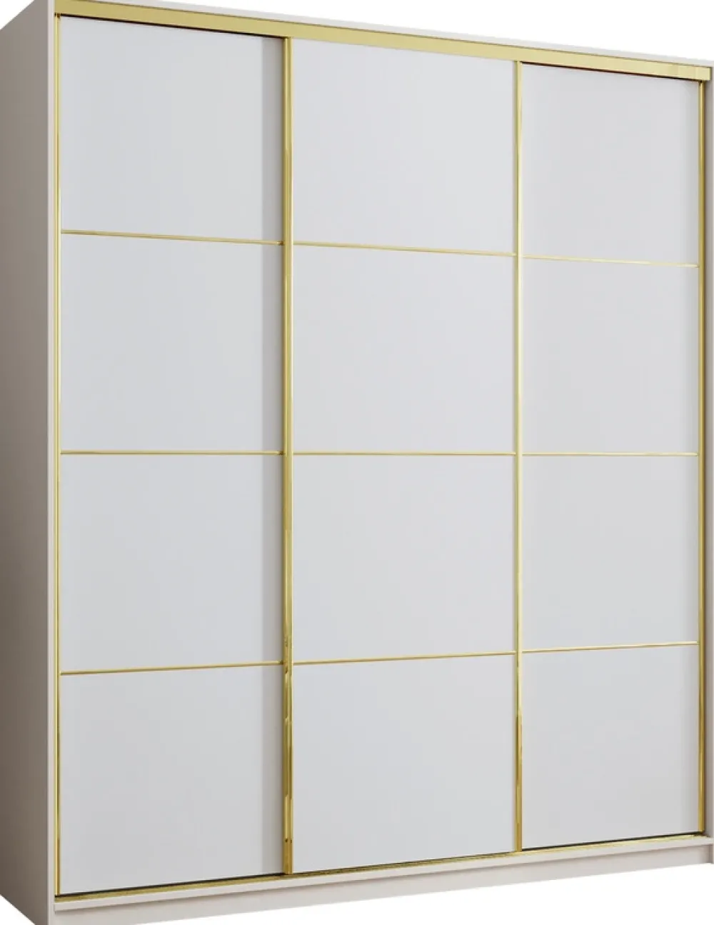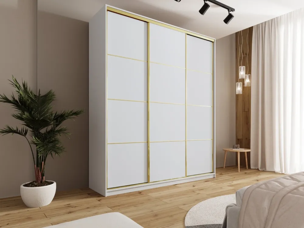 Szafa przesuwna 200×235 cm ze złotym wykończeniem – maksymalna pojemność i elegancja