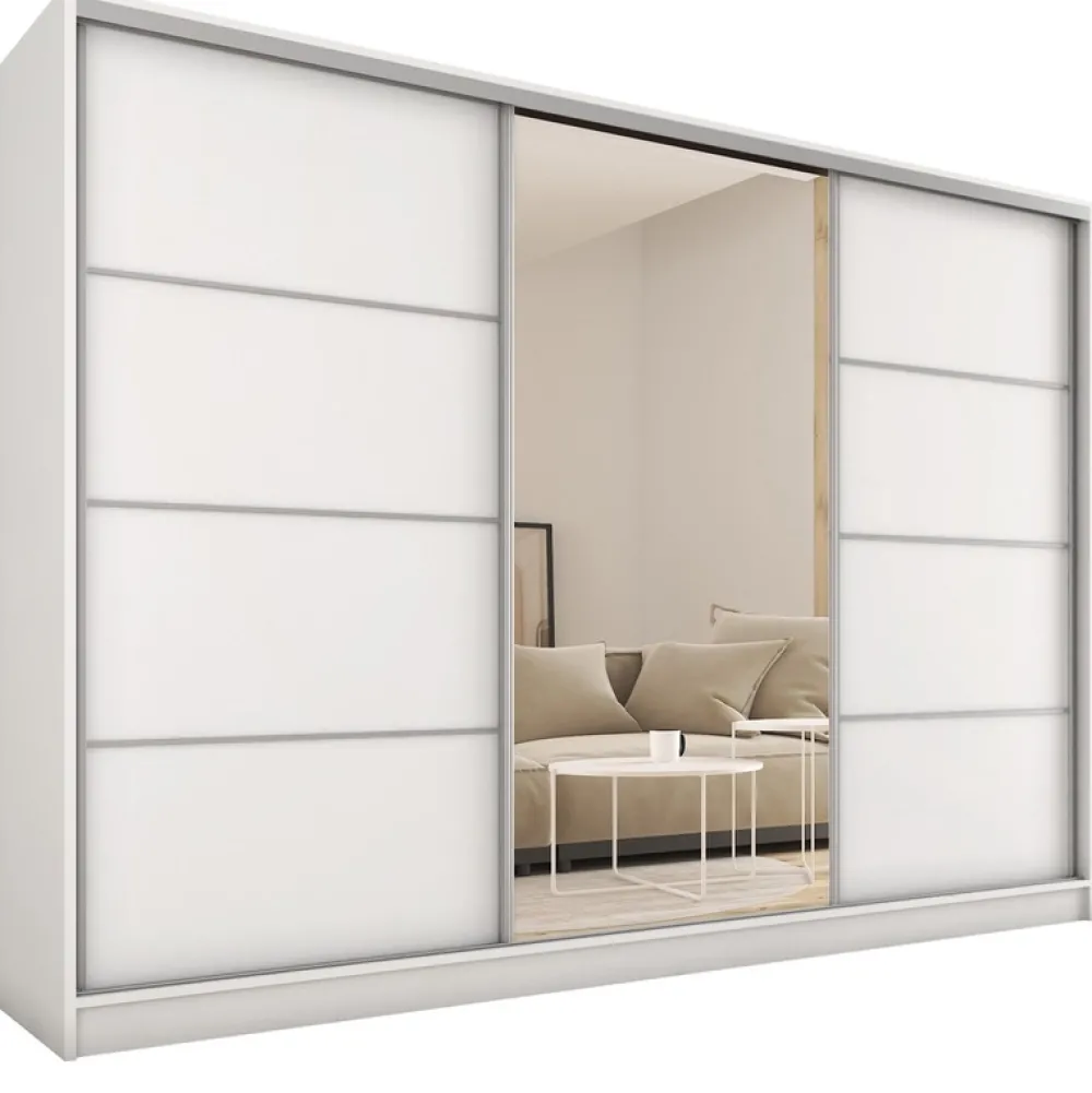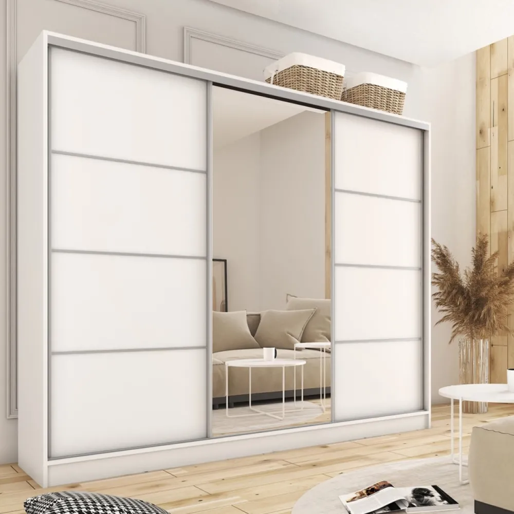 Szukasz mebla, który łączy nowoczesny design z praktycznymi rozwiązaniami? Trzydrzwiowa szafa przesuwna TOP MAX to idealny wybór, który zaspokoi Twoje potrzeby i doskonale wpasuje się w wystrój Twojego wnętrza. Dzięki przemyślanej konstrukcji oraz wysokiej jakości materiałom, szafa zapewnia zarówno elegancję, jak i funkcjonalność.