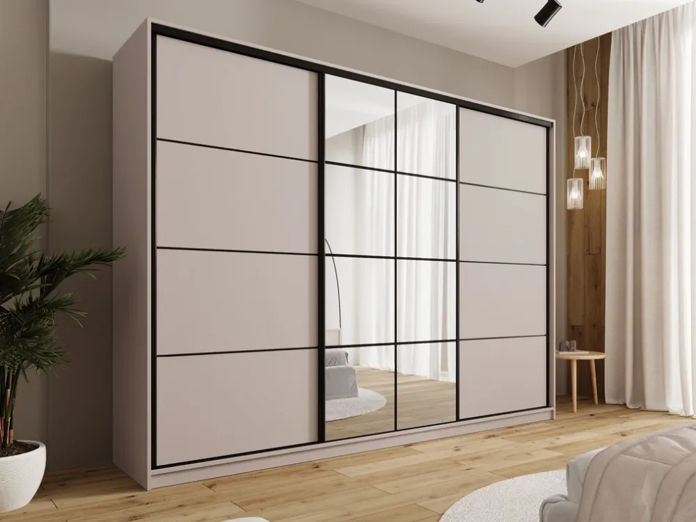 Wybierając szafę z lustrem 280 cm, inwestujesz w funkcjonalność, styl i wygodę. To idealny mebel do każdej przestronnej sypialni lub garderoby, który pozwoli Ci zorganizować przestrzeń i cieszyć się pięknym, nowoczesnym wnętrzem.