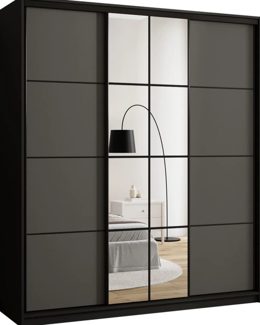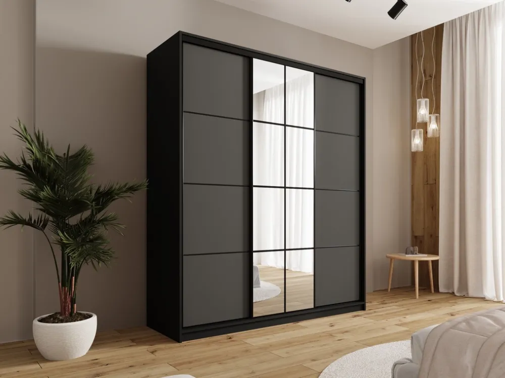 Przedstawiamy elegancką i funkcjonalną szafę z lustrem o szerokości 180 cm EDGE, która doskonale łączy nowoczesny design z praktycznymi rozwiązaniami. Idealnie sprawdzi się w sypialni, garderobie lub przedpokoju, oferując przestrzeń do przechowywania i jednocześnie optycznie powiększając pomieszczenie dzięki dużemu lustrzanemu frontowi.
