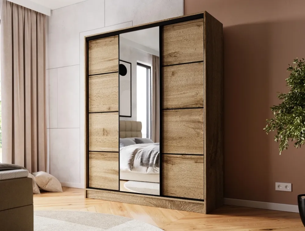 Szafa przesuwna z lustrem BEST to kwintesencja nowoczesnego designu i funkcjonalności, idealna do każdego współczesnego domu. Ta nowoczesna szafa z lustrem ma 180 cm szerokości, zapewniając obszerną przestrzeń do przechowywania ubrań i innych przedmiotów.