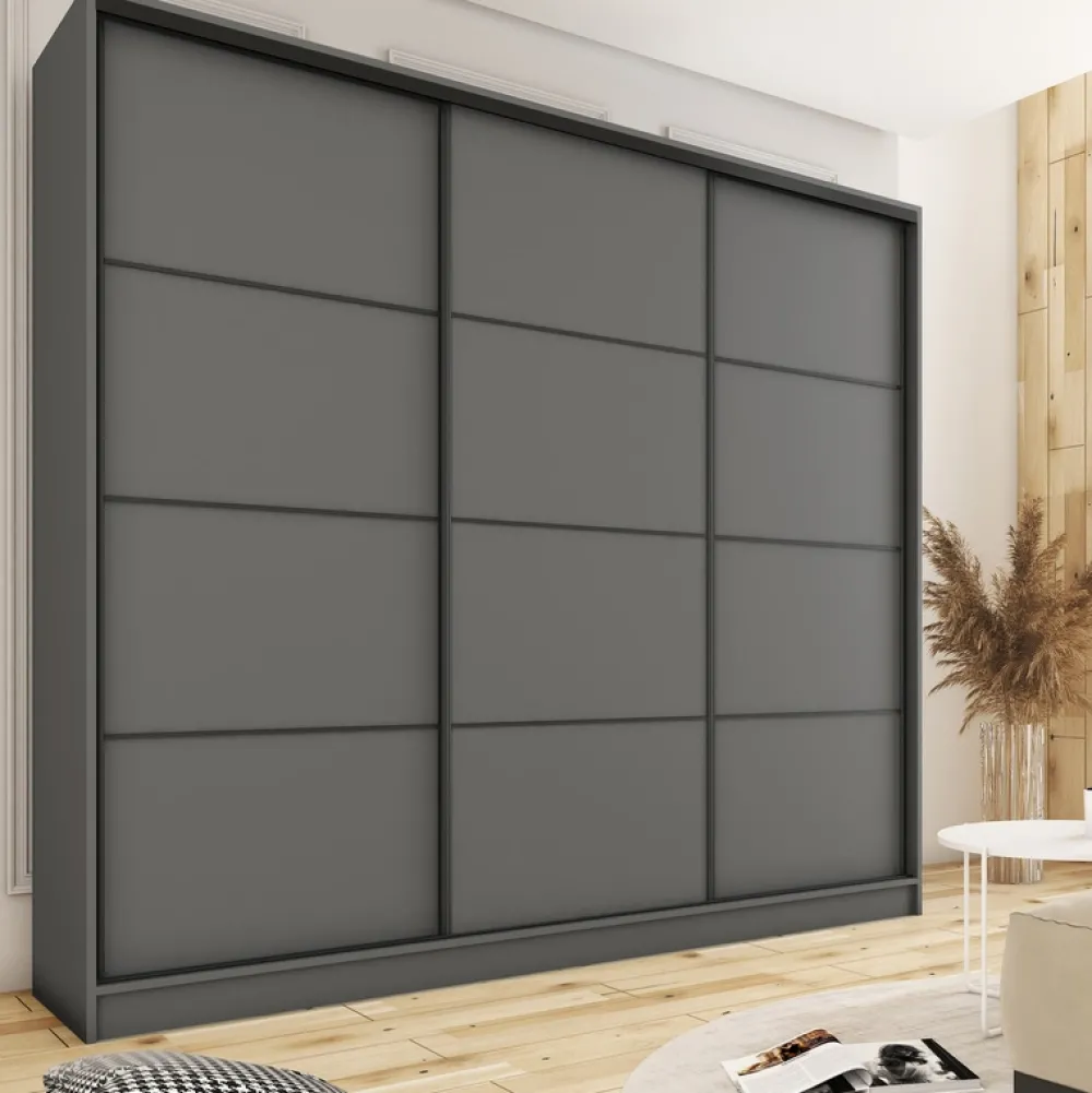 Nasza szafa przesuwna 250 cm to idealne połączenie stylu, przestronności i funkcjonalności. Wybierz mebel, który nie tylko pomoże Ci zorganizować przestrzeń, ale także doda elegancji Twojemu wnętrzu. Inwestując w tę szafę, wybierasz jakość, komfort i nowoczesny design. Spraw, aby Twoje wnętrze stało się miejscem, gdzie funkcjonalność spotyka się z estetyką na najwyższym poziomie.