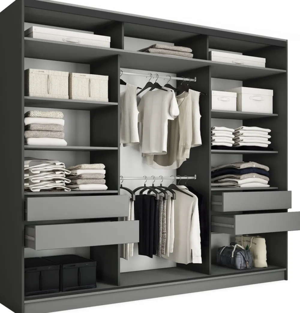 Nasza szafa przesuwna z lustrem o szerokości 280 cm to synonim stylu, przestronności i funkcjonalności. Wybierz mebel, który nie tylko pomoże Ci zorganizować przestrzeń, ale także doda elegancji Twojemu wnętrzu. Inwestując w tę szafę, wybierasz jakość, komfort i nowoczesny design. Spraw, aby Twoje wnętrze stało się miejscem, gdzie funkcjonalność spotyka się z estetyką na najwyższym poziomie.