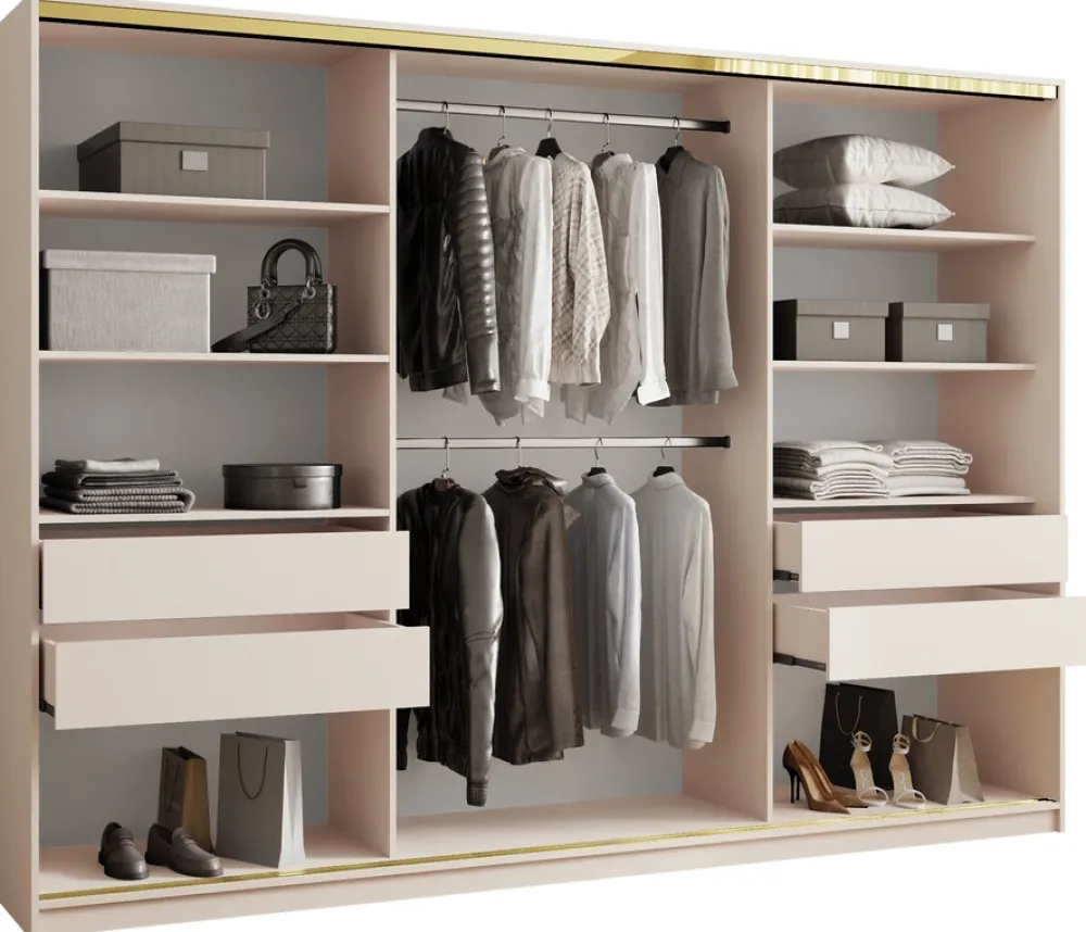 Wybierz szafę, która łączy styl i funkcjonalność – postaw na złote akcenty i przemyślane wnętrze!