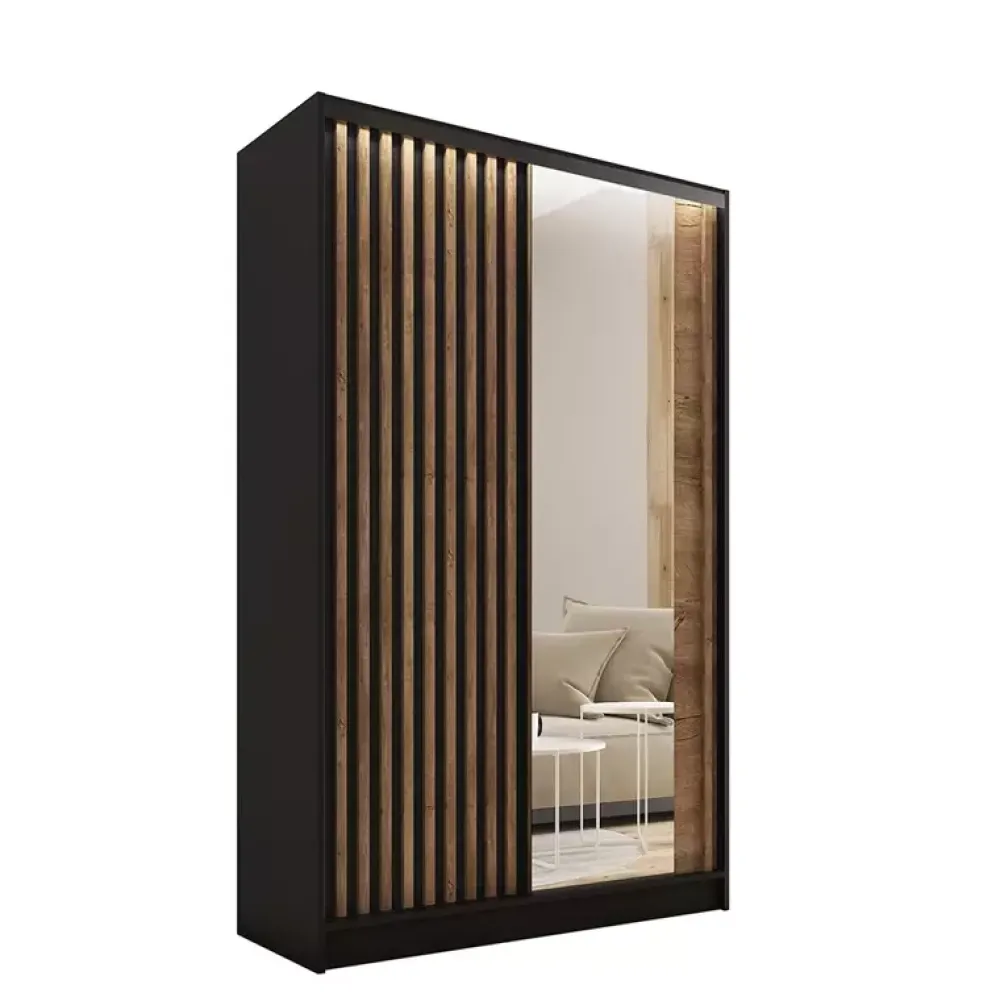 - Szafa przesuwna o szerokości 120 cm z wnętrzem zaaranżowanym z nastawieniem na jak największą swobodę użytkowania. Cztery duże półki, dwie szerokie szuflady oraz dwa drążki do samodzielnego nawiercenia, aby każdy mógł dopasować szafę do swoich potrzeb!