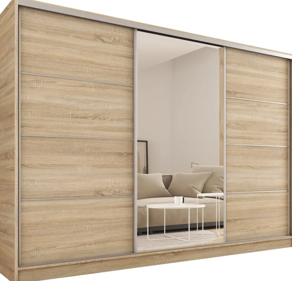 - Szafa przesuwna 250 cm z lustrem wpasuje się do modernistycznego wnętrza, a umieszczone na środkowym froncie lustro optycznie powiększy wąskie i niewielkie pomieszczenia.