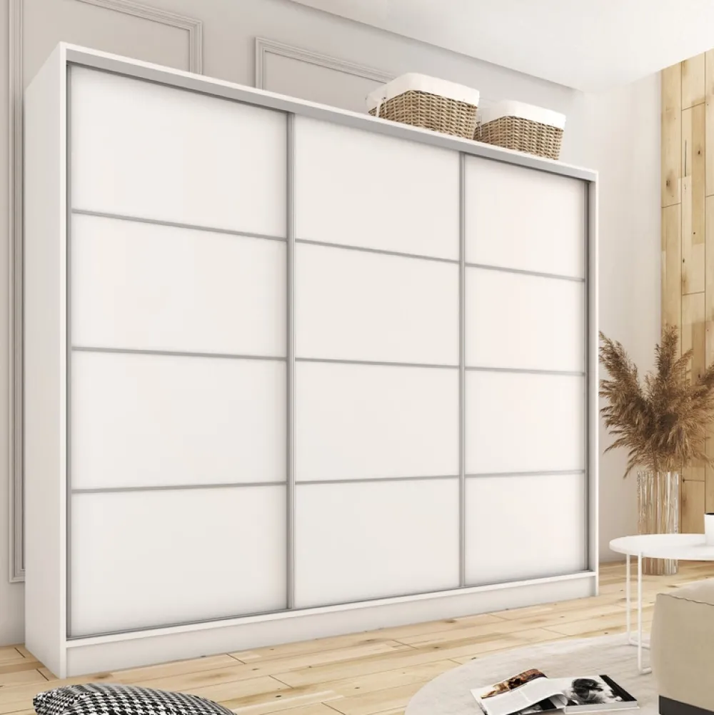 Szafa przesuwna w białym kolorze 250 cm TOP MAX to nie tylko funkcjonalny mebel, ale także stylowy element wyposażenia wnętrza. Jej nowoczesny design doskonale wpisuje się w aktualne trendy wnętrzarskie, dodając każdemu pomieszczeniu elegancji i klasy. Dzięki zastosowaniu wysokiej jakości materiałów oraz precyzyjnemu wykonaniu szafa TOP MAX zachowuje swój atrakcyjny wygląd przez wiele lat.