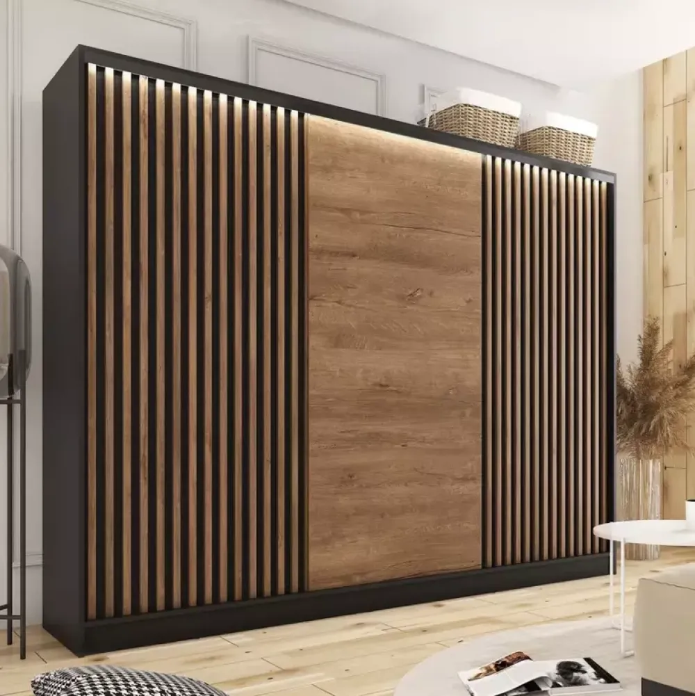 Zestawy Mebli Do Przedpokoju|Szafy Trzydrzwiowe>BROMARKT Szafa przesuwna z lamelami do przedpokoju LOFT 250 cm