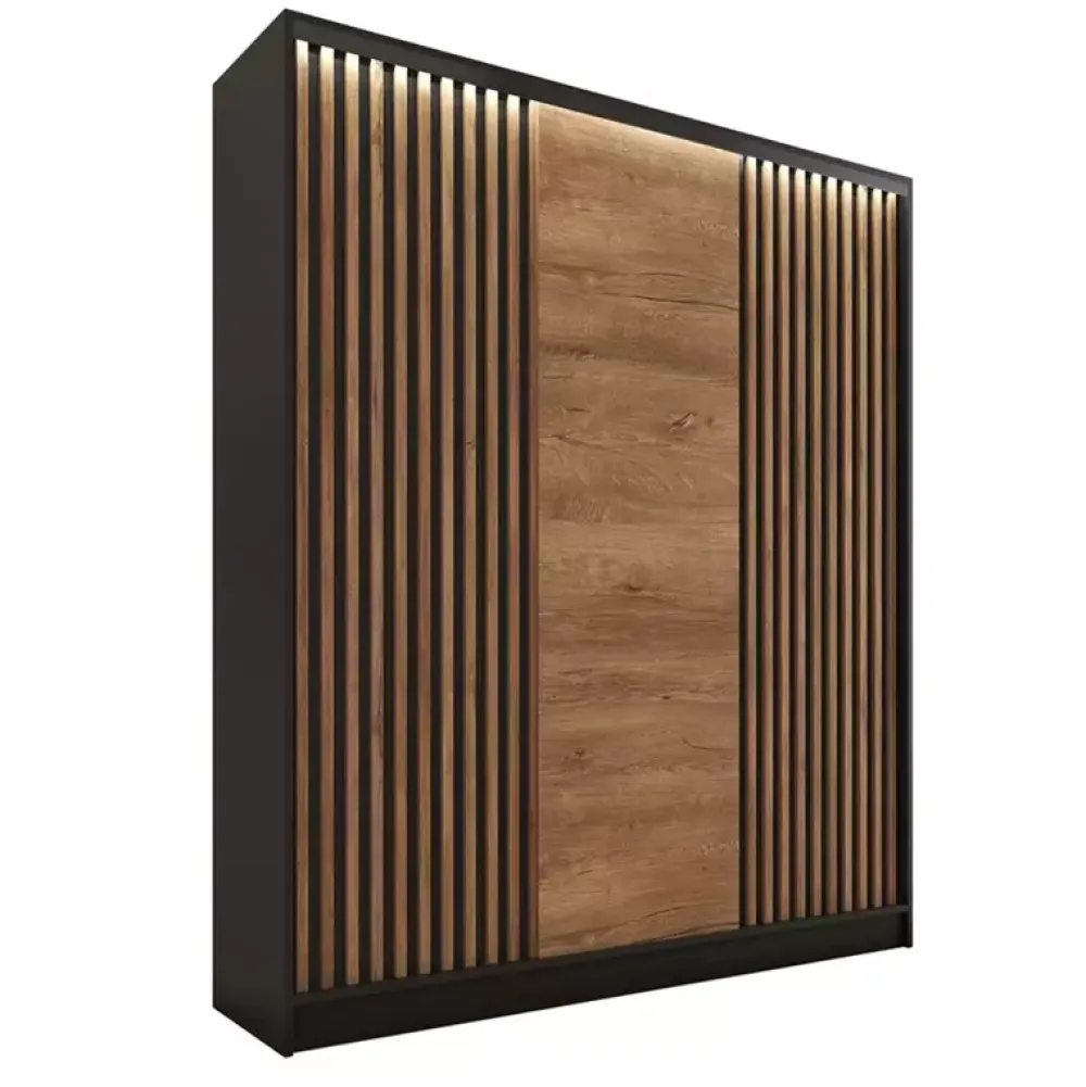 Szafa przesuwna LOFT 150 cm to doskonały wybór dla miłośników nowoczesnego designu i praktycznych rozwiązań. Jej unikalne lamelowe fronty wprowadzają industrialny charakter, który świetnie wpisuje się w styl loftowy, dodając wnętrzu wyrazistości i elegancji. Szerokość 150 cm czyni ją idealnym rozwiązaniem zarówno do przestronnych sypialni, jak i mniejszych pomieszczeń.