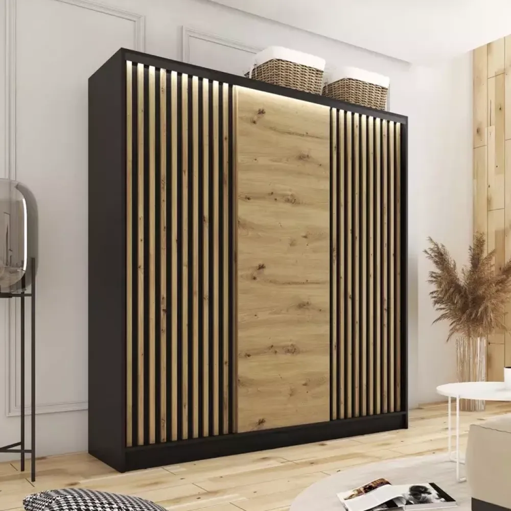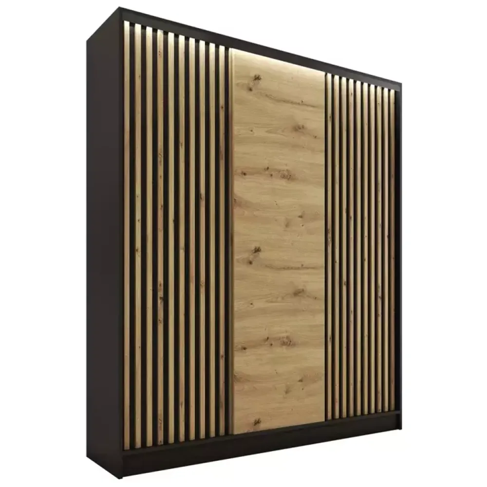 Zestawy Mebli Do Przedpokoju|Szafy Trzydrzwiowe>BROMARKT Szafa przesuwna z lamelami LOFT 150 cm