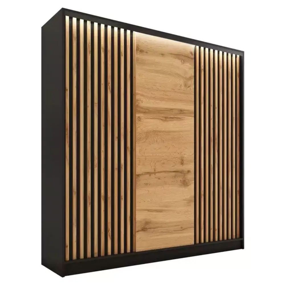 Zestawy Mebli Do Przedpokoju|Szafy Trzydrzwiowe>BROMARKT Szafa przesuwna z lamelami LOFT 180 cm wotan