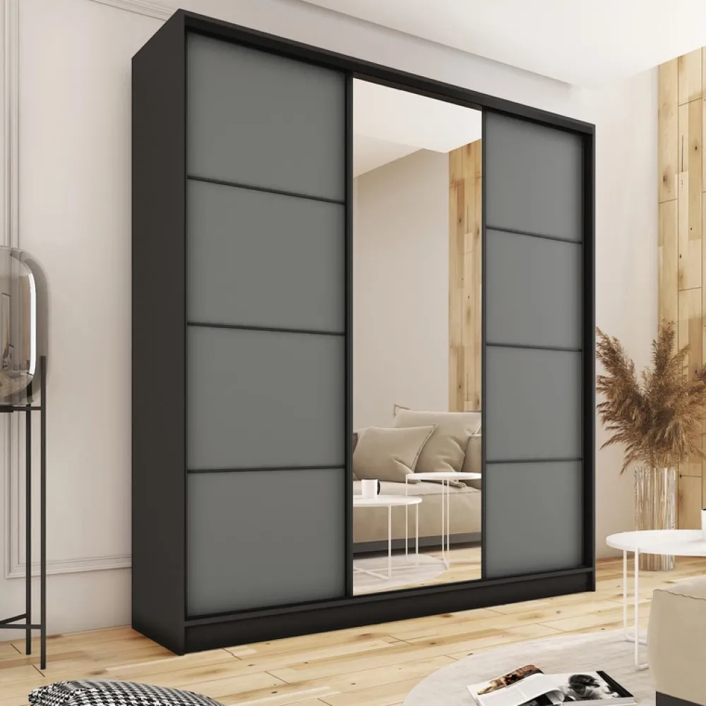 Nasza szafa przesuwna z lustrem 200 cm to synonim elegancji, przestronności i funkcjonalności. Wybierz mebel, który pomoże Ci zorganizować przestrzeń i doda stylu Twojemu wnętrzu. Inwestując w tę szafę, wybierasz jakość, komfort i nowoczesny design. Spraw, aby Twoje wnętrze stało się miejscem, gdzie funkcjonalność spotyka się z estetyką na najwyższym poziomie.