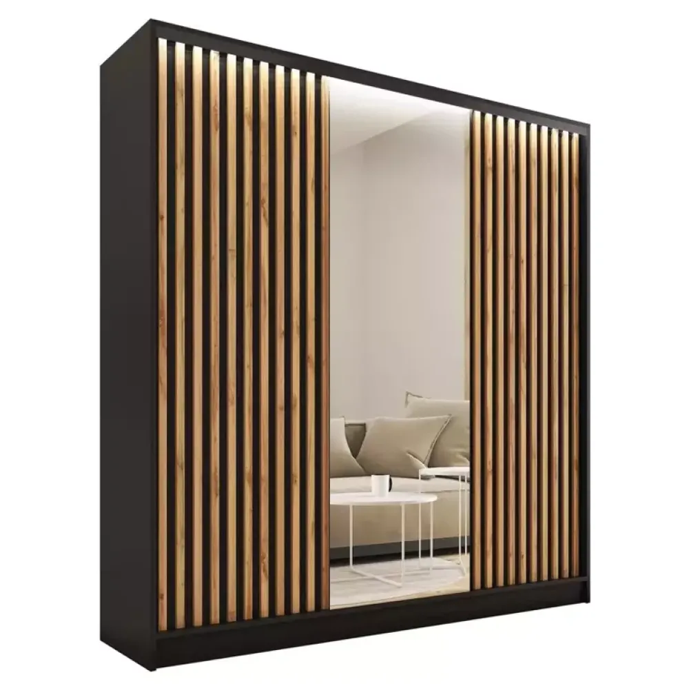 Zestawy Mebli Do Przedpokoju|Szafy Trzydrzwiowe>BROMARKT Szafa przesuwna z lustrem lamele LOFT 180 cm