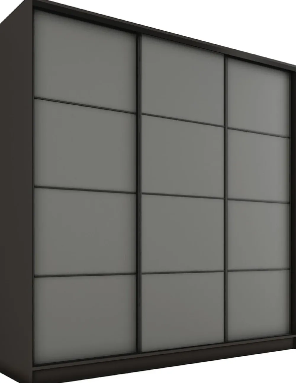 - Stalowe uchwyty w czarnym kolorze zostały umieszczone na krawędziach drzwi. Zostały wykonane w kolorze prowadnicy, dzięki czemu doskonale komponują się z całością szafy.