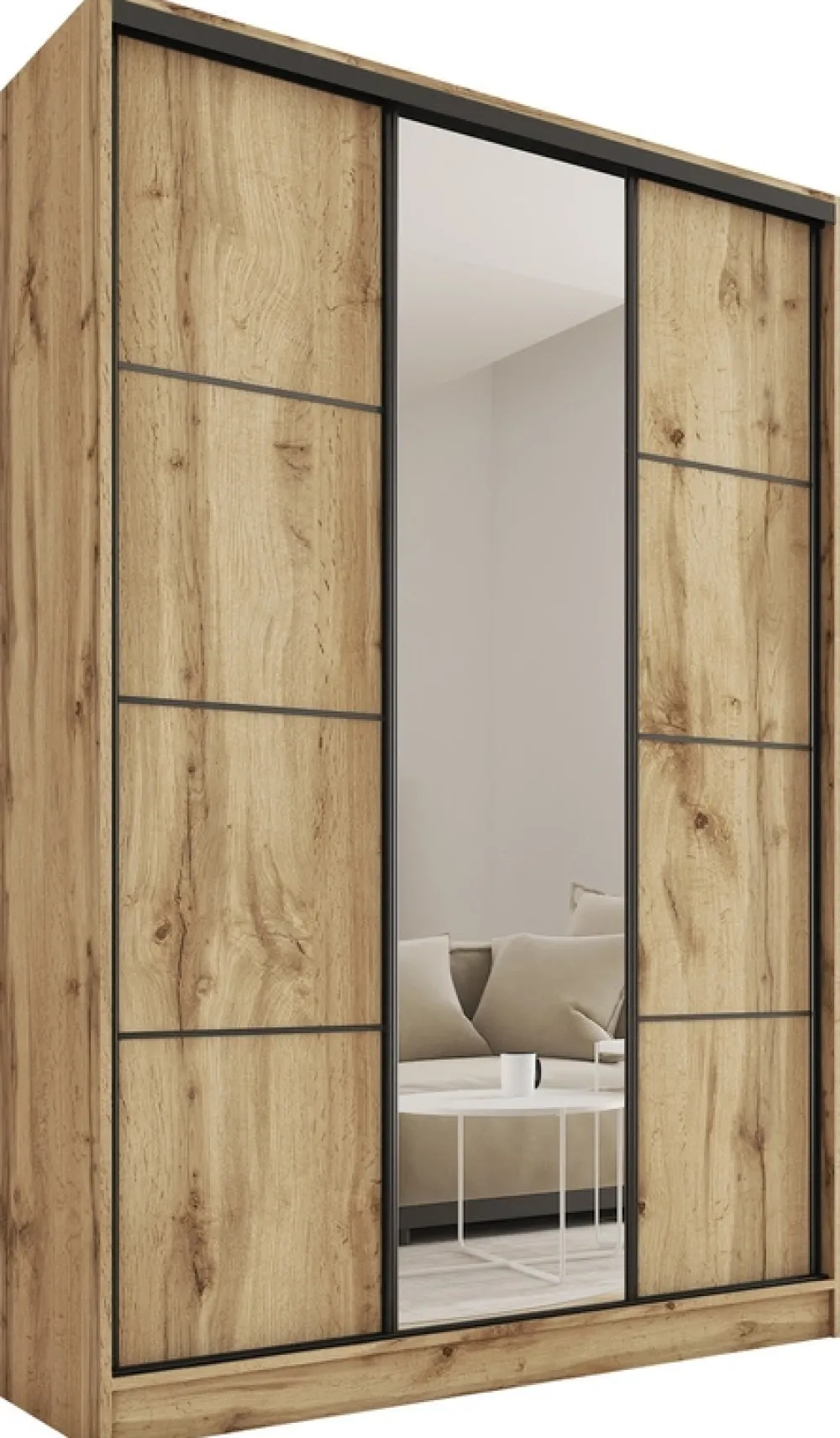 Wybierz naszą szafę przesuwną 150 cm i ciesz się idealną harmonią stylu i praktyczności. To mebel, który nie tylko doskonale zorganizuje Twoją przestrzeń, ale także doda elegancji Twojemu wnętrzu. Zainwestuj w jakość, która ułatwi Ci codzienne życie i sprawi, że każdy dzień będzie zaczynał się w uporządkowanej, stylowej przestrzeni.